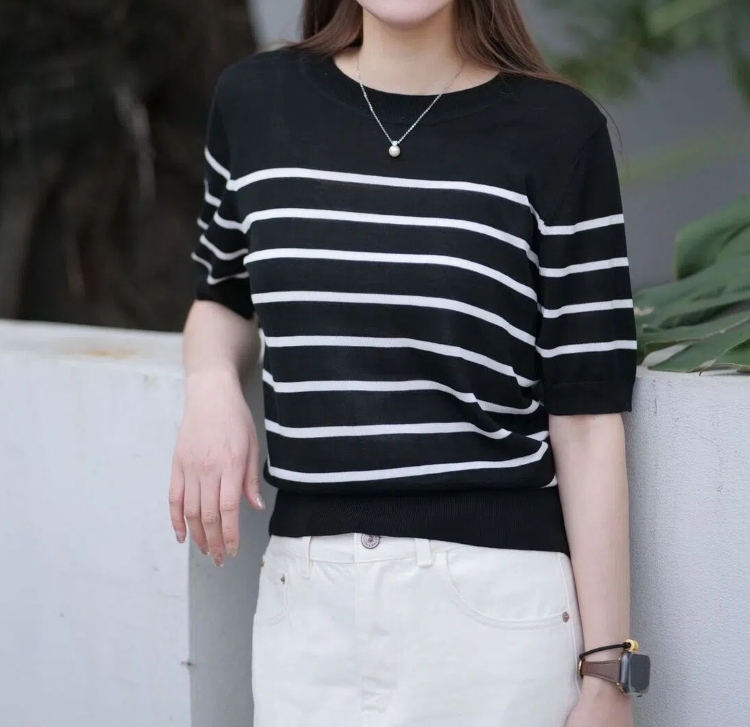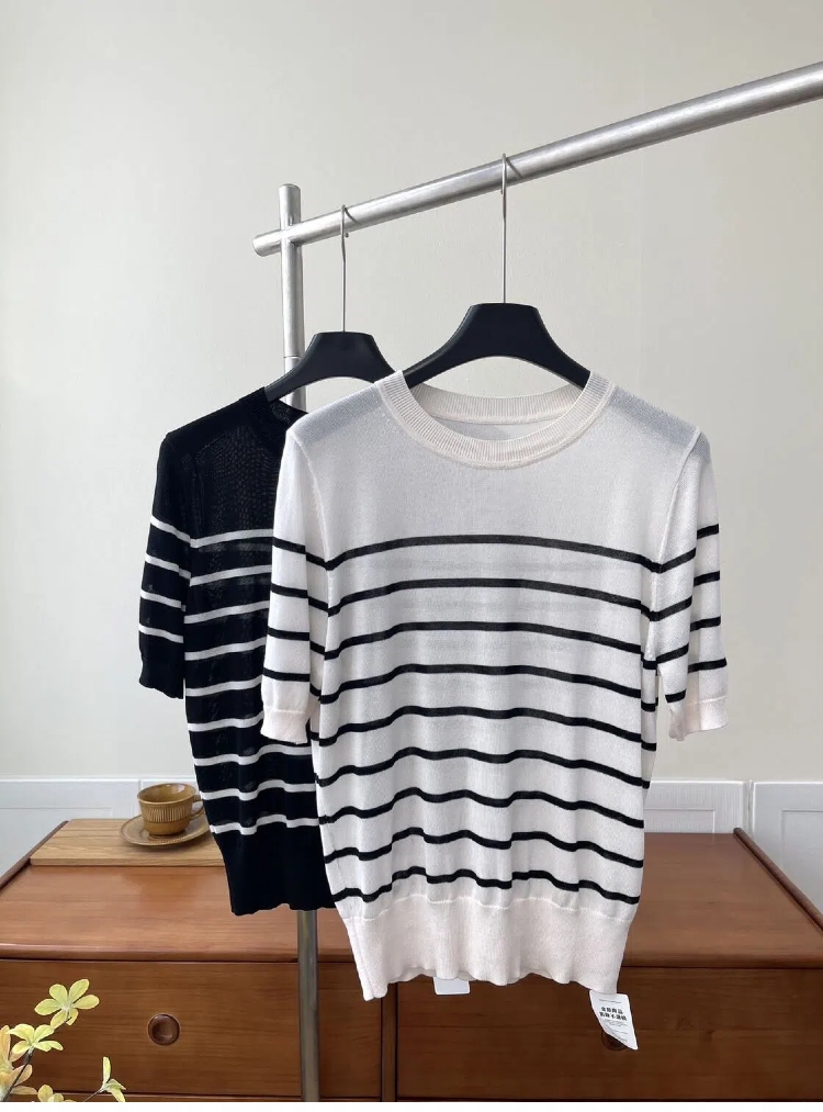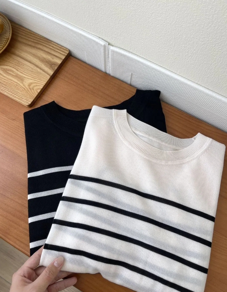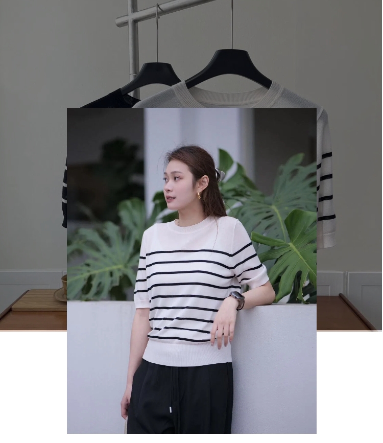 (小眠专属)莱赛尔条纹圆领短袖T恤