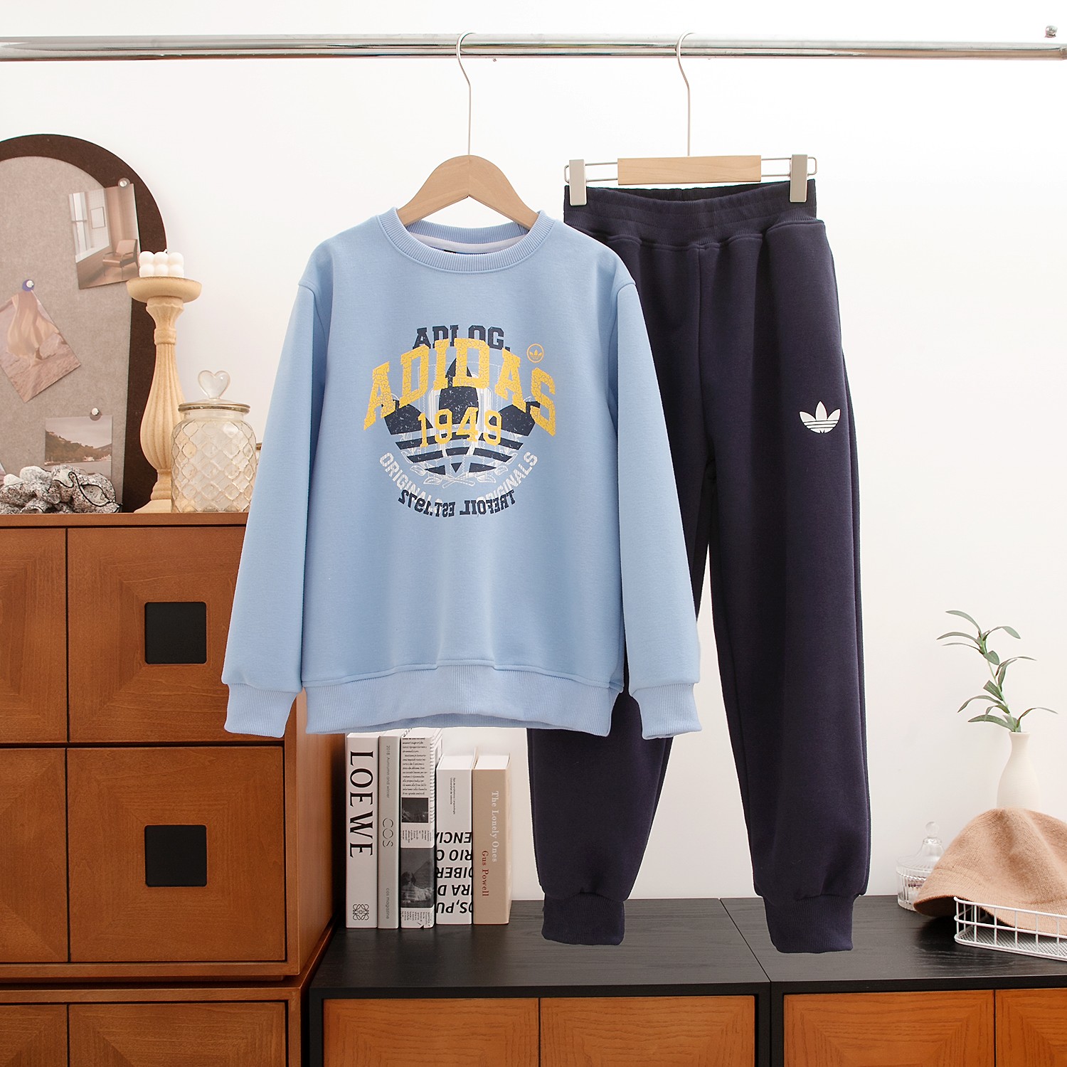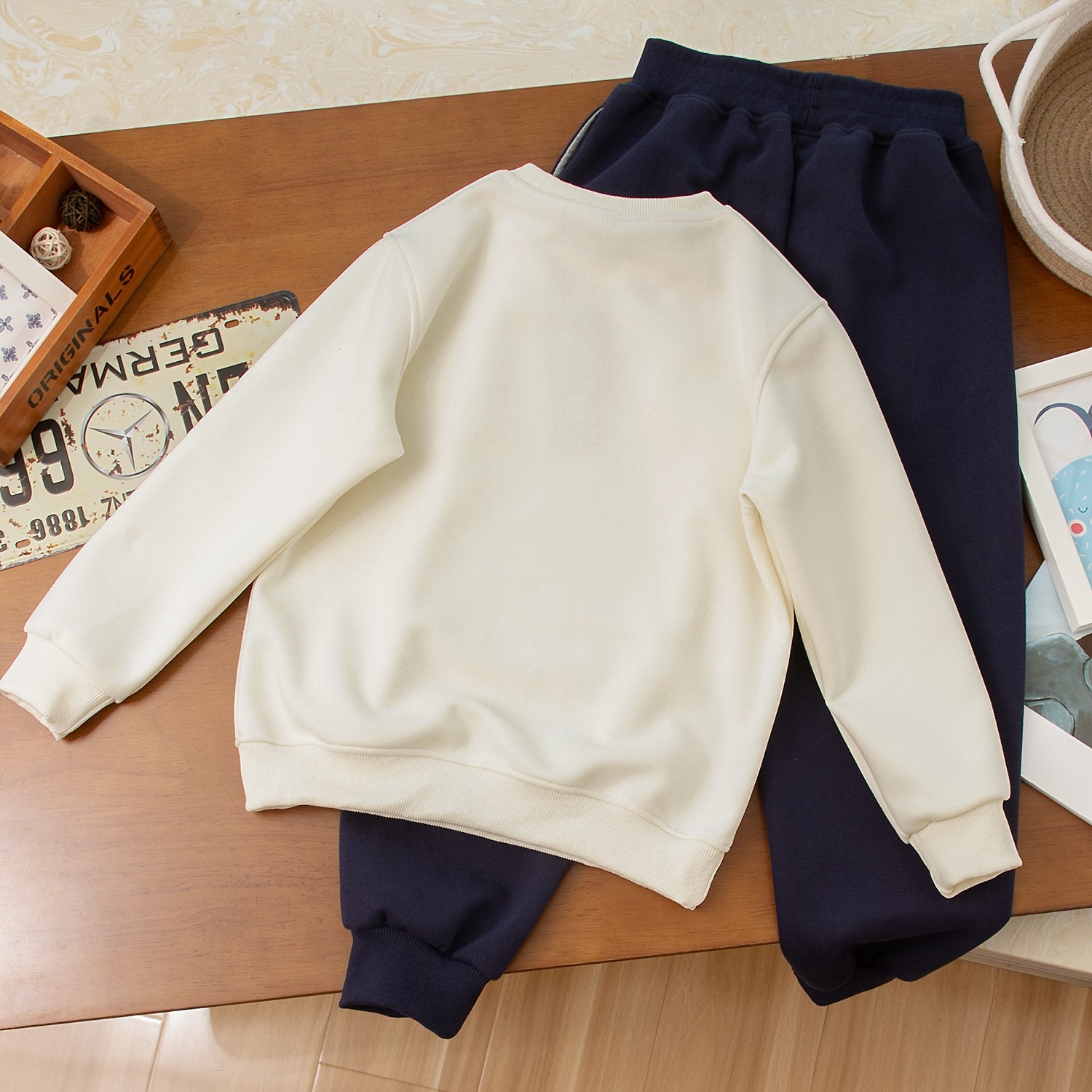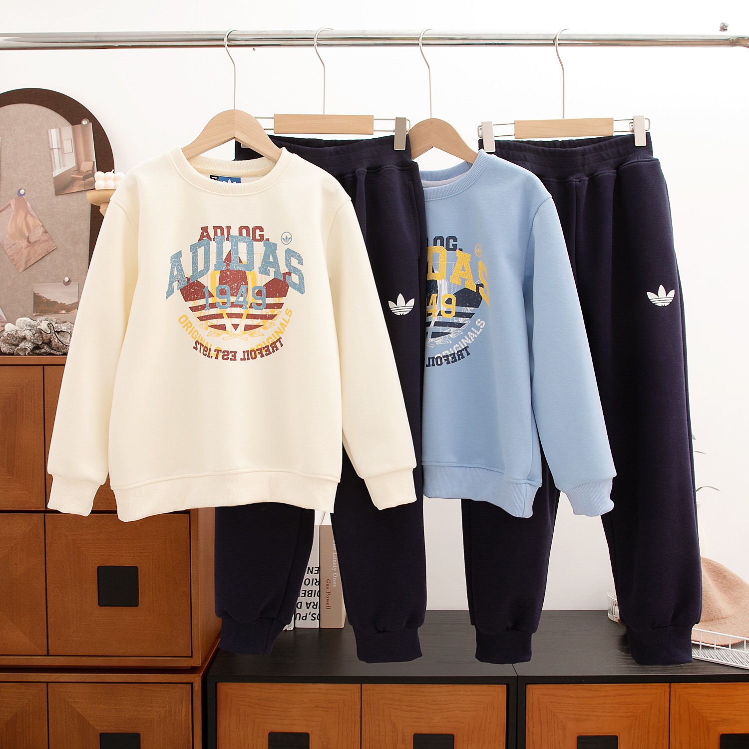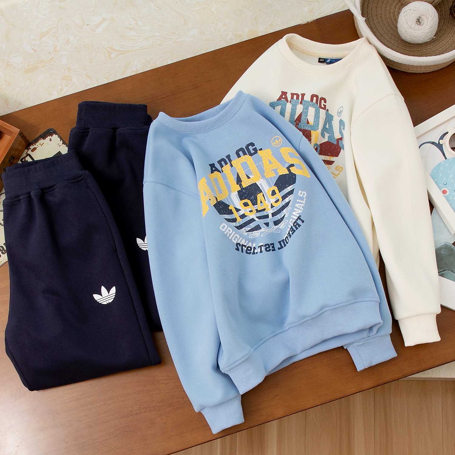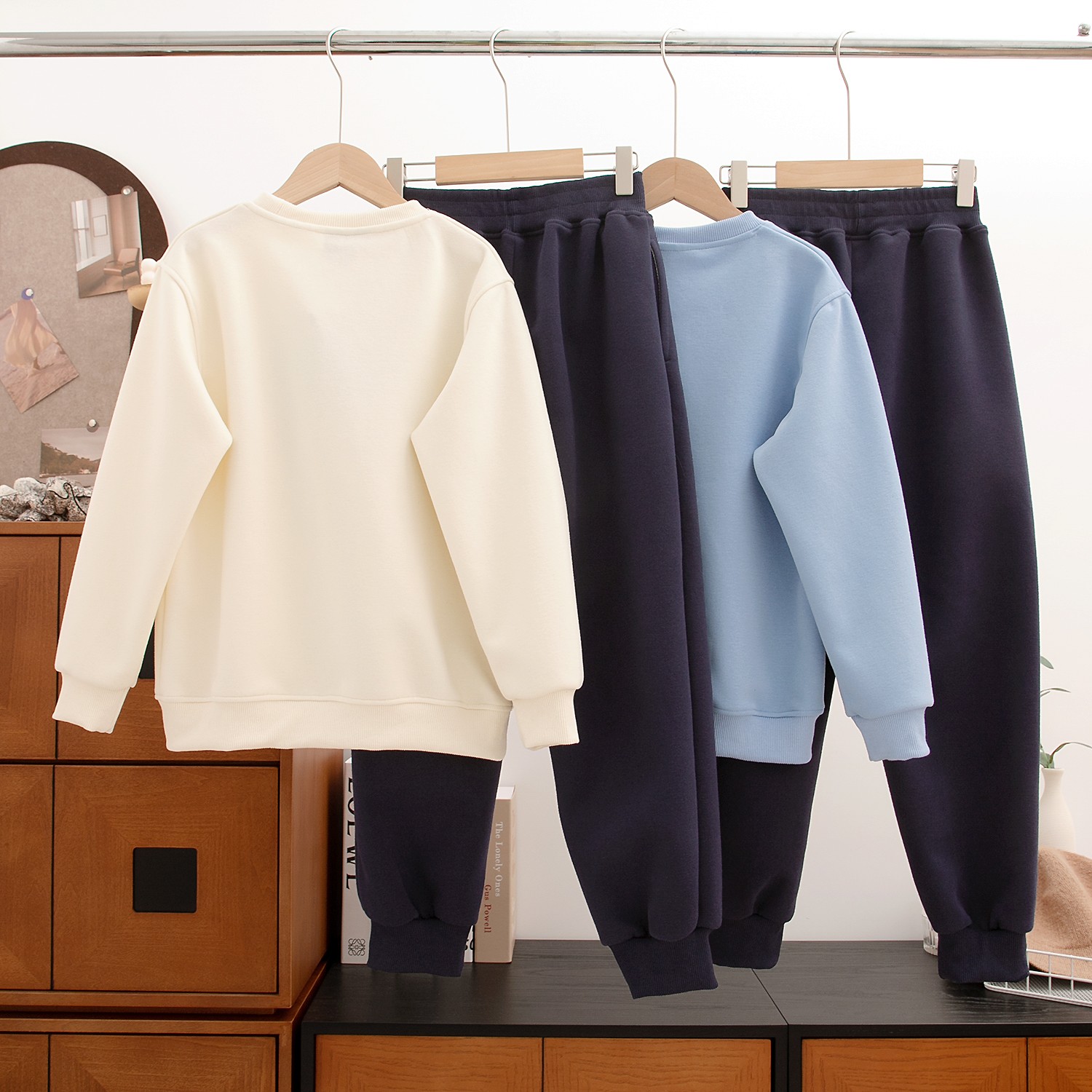 颜色:米白色套装 蓝色套装