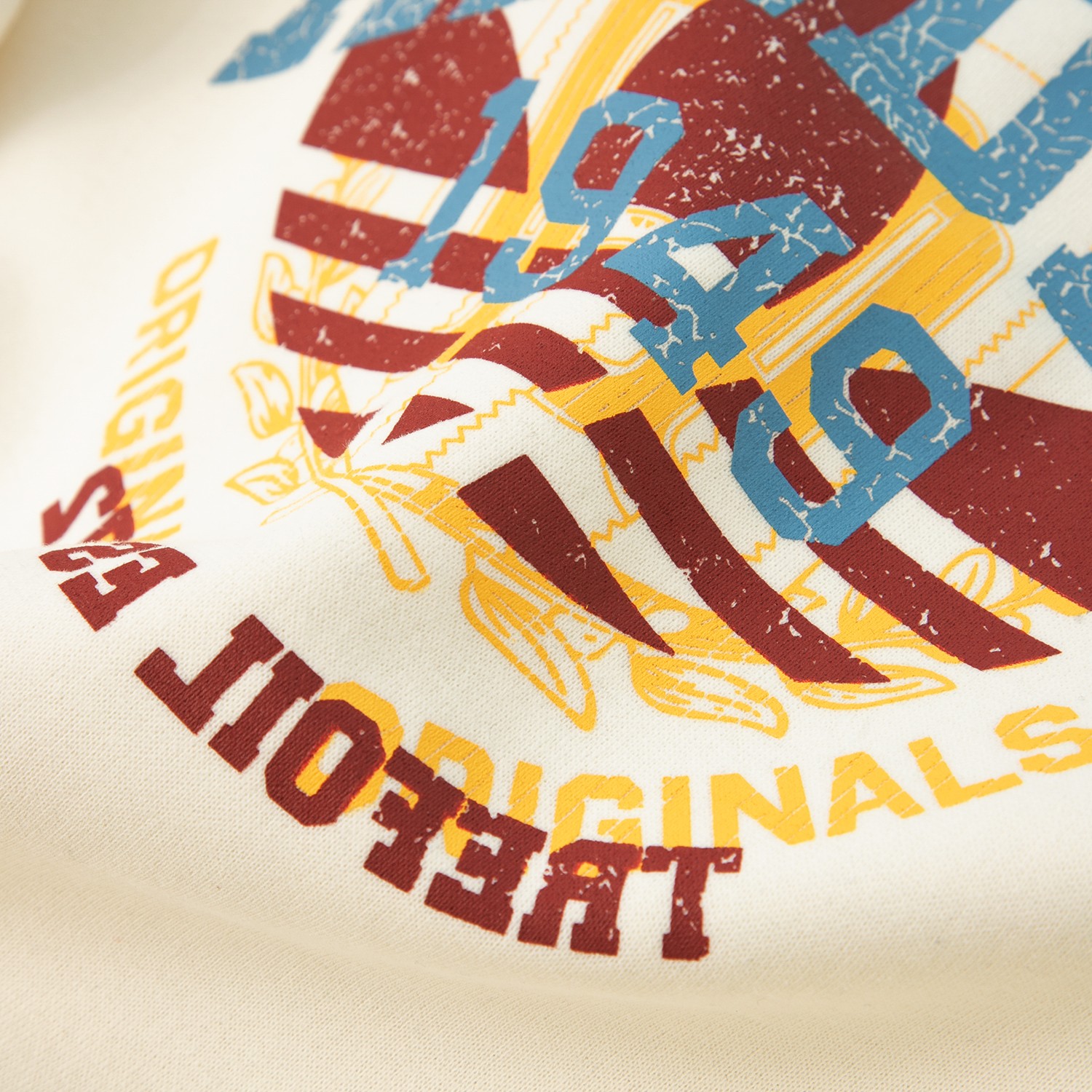 胸前大面积的印花,全部活性印染,颜色鲜艳,固色好,洗多次也不会有颜色变淡变旧的情况!