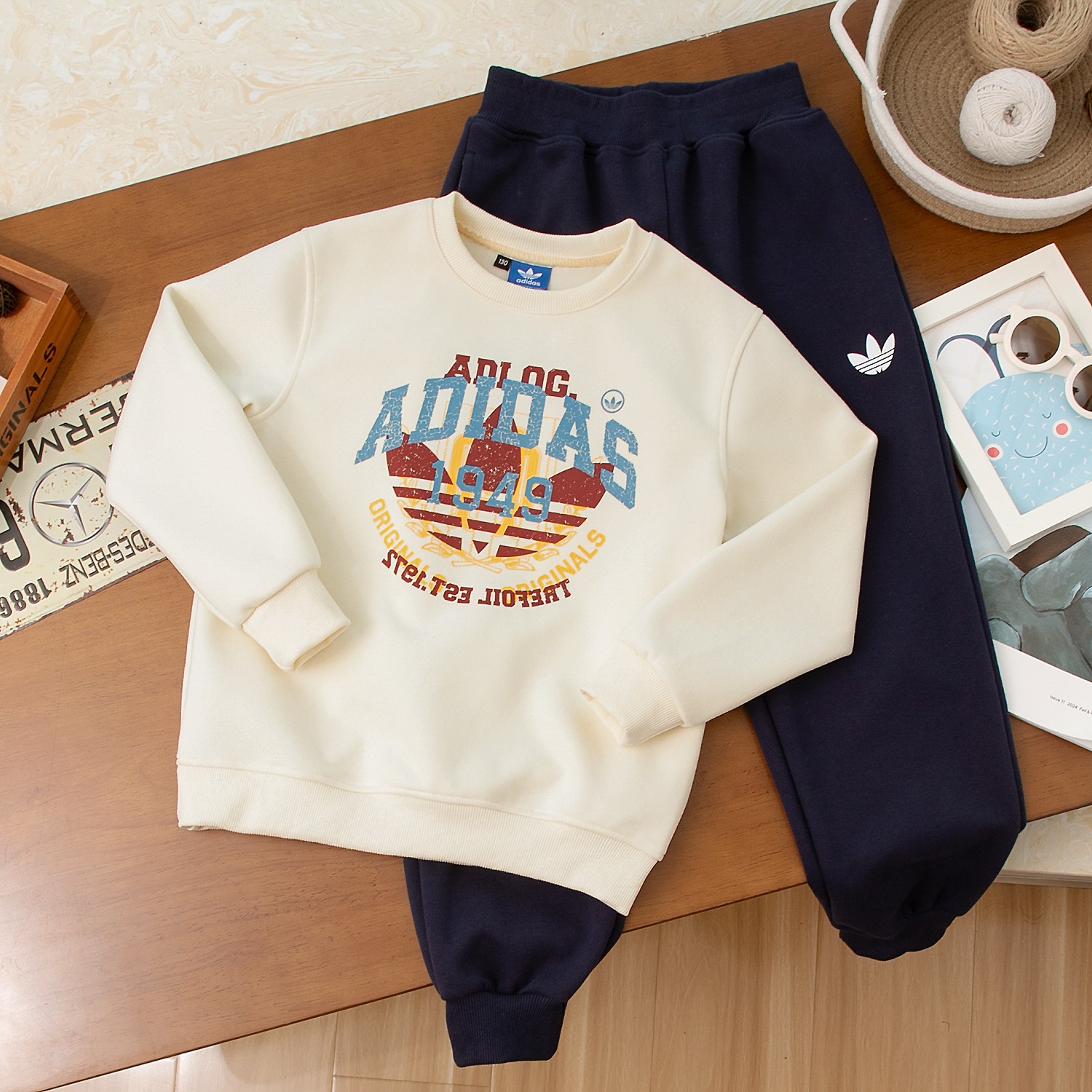 95 gl 25年秋款上新啦!ADIDAS阿迪达斯中大童男童运动套装儿童秋款卫衣+裤子