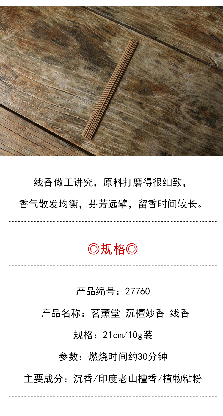 茶香记 茗薫堂 沉檀妙香 线香 沉香+印度老山檀 好闻留香久