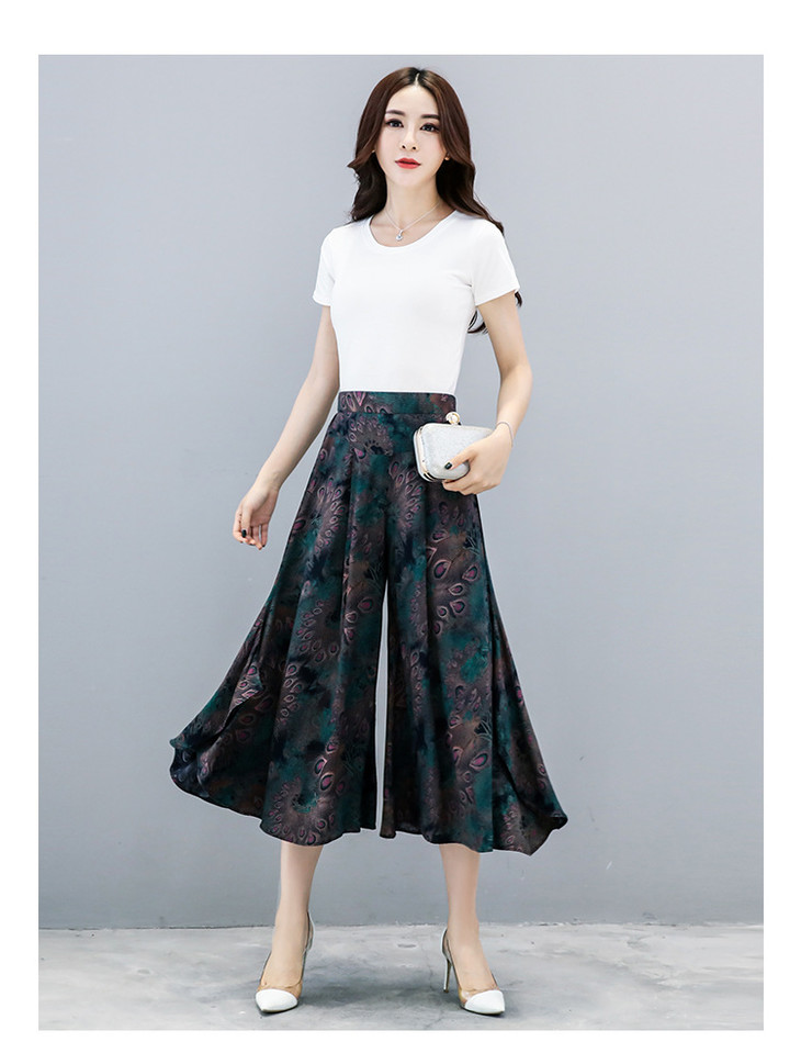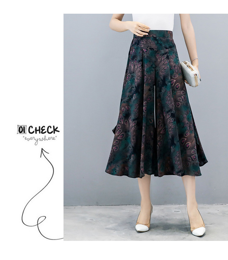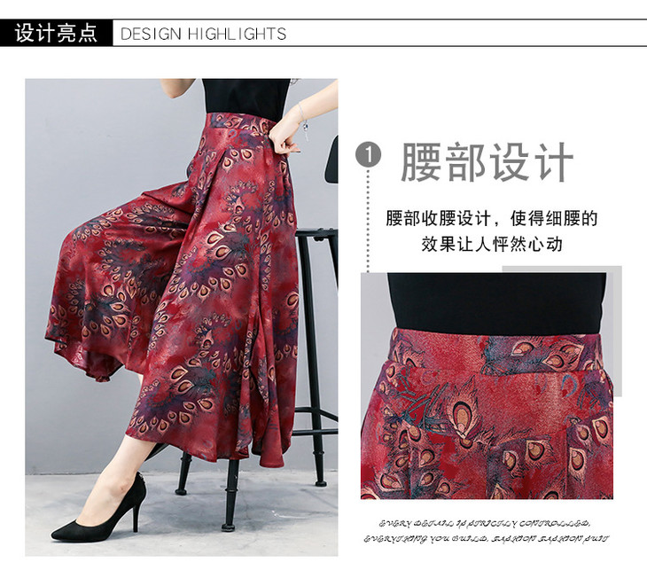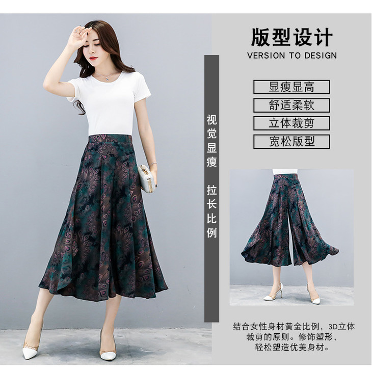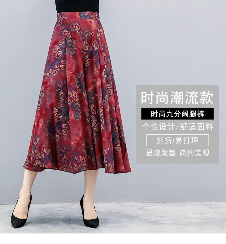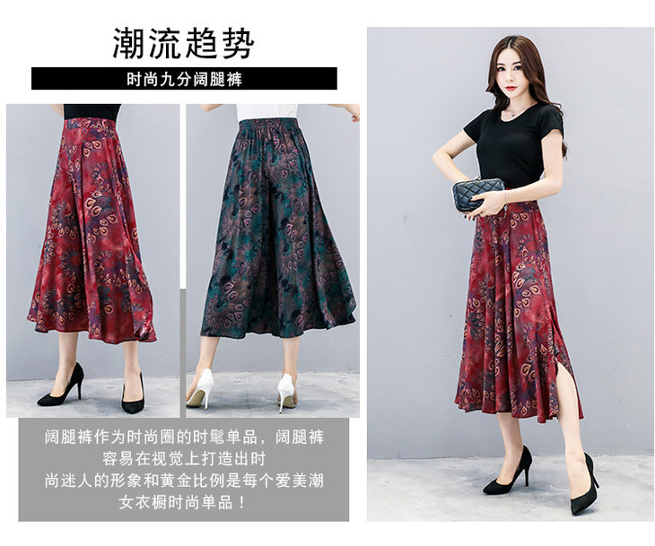 2018夏季新款高腰宽松显瘦九分印花阔腿裤大码