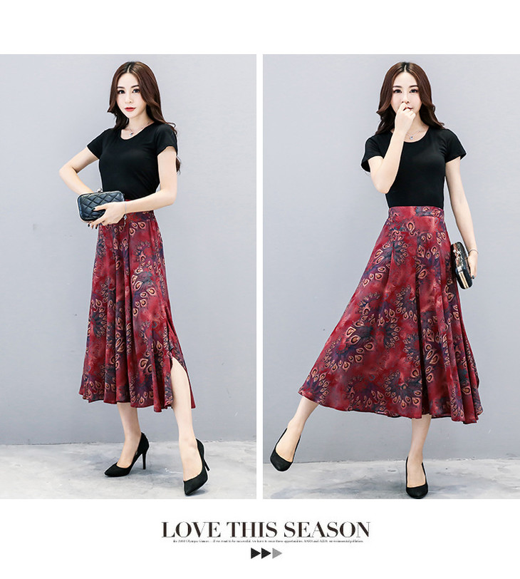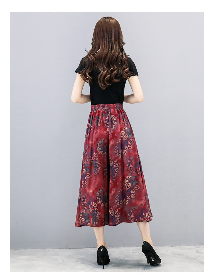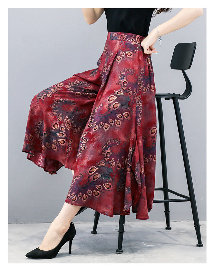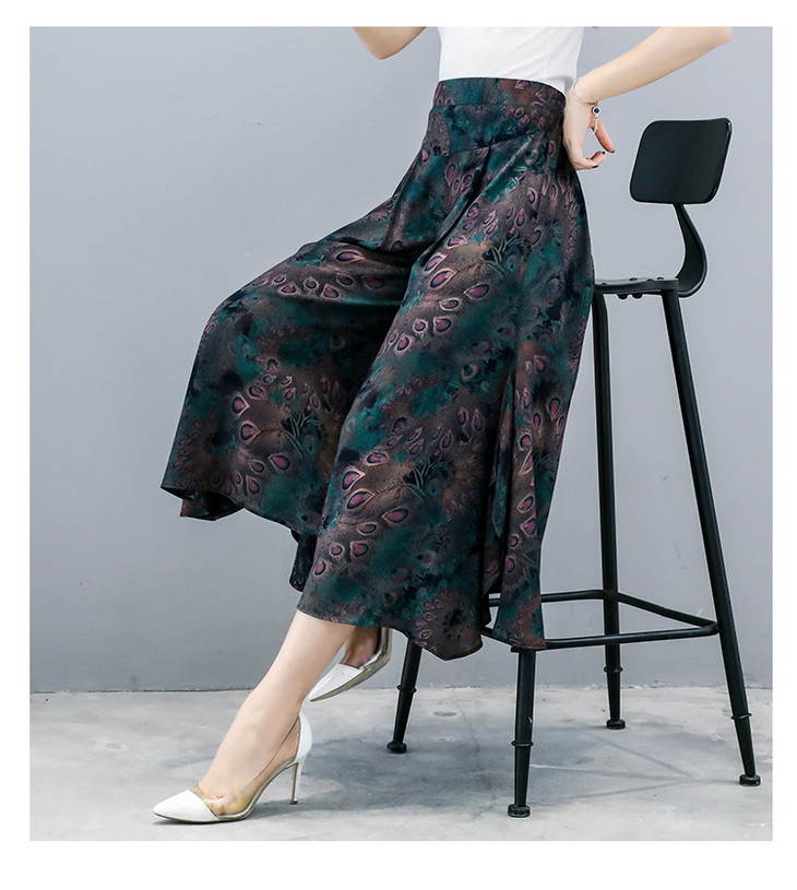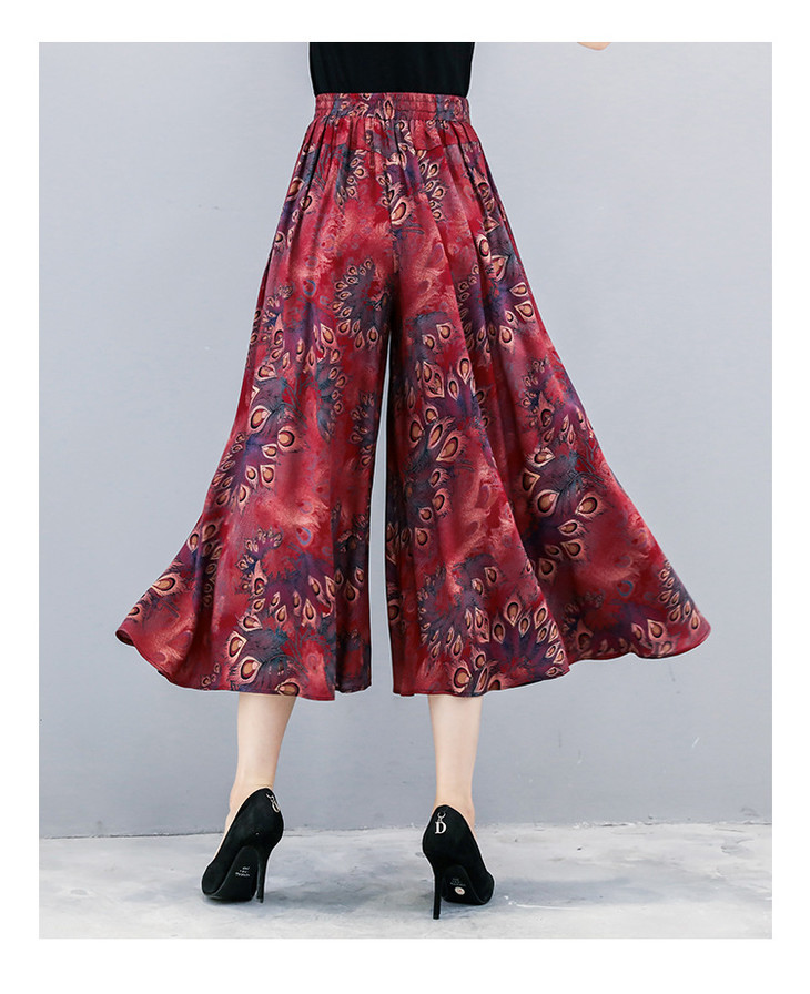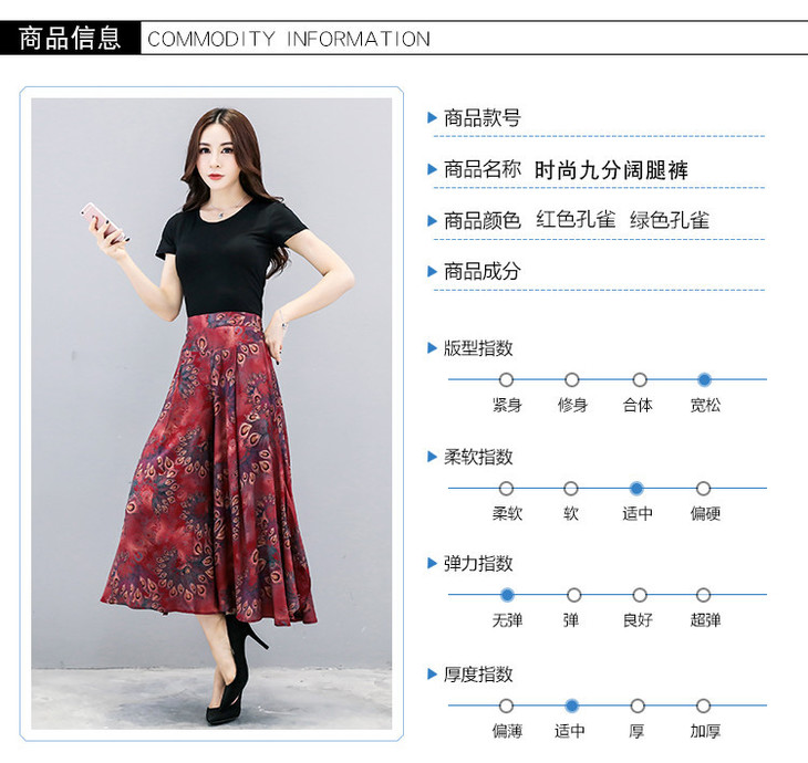 2018夏季新款高腰宽松显瘦九分印花阔腿裤大码