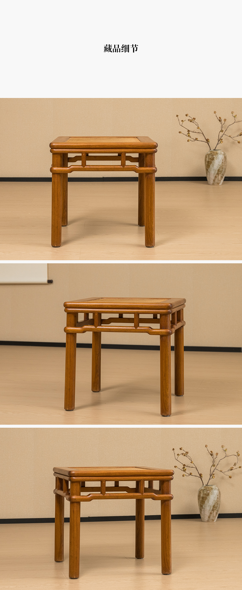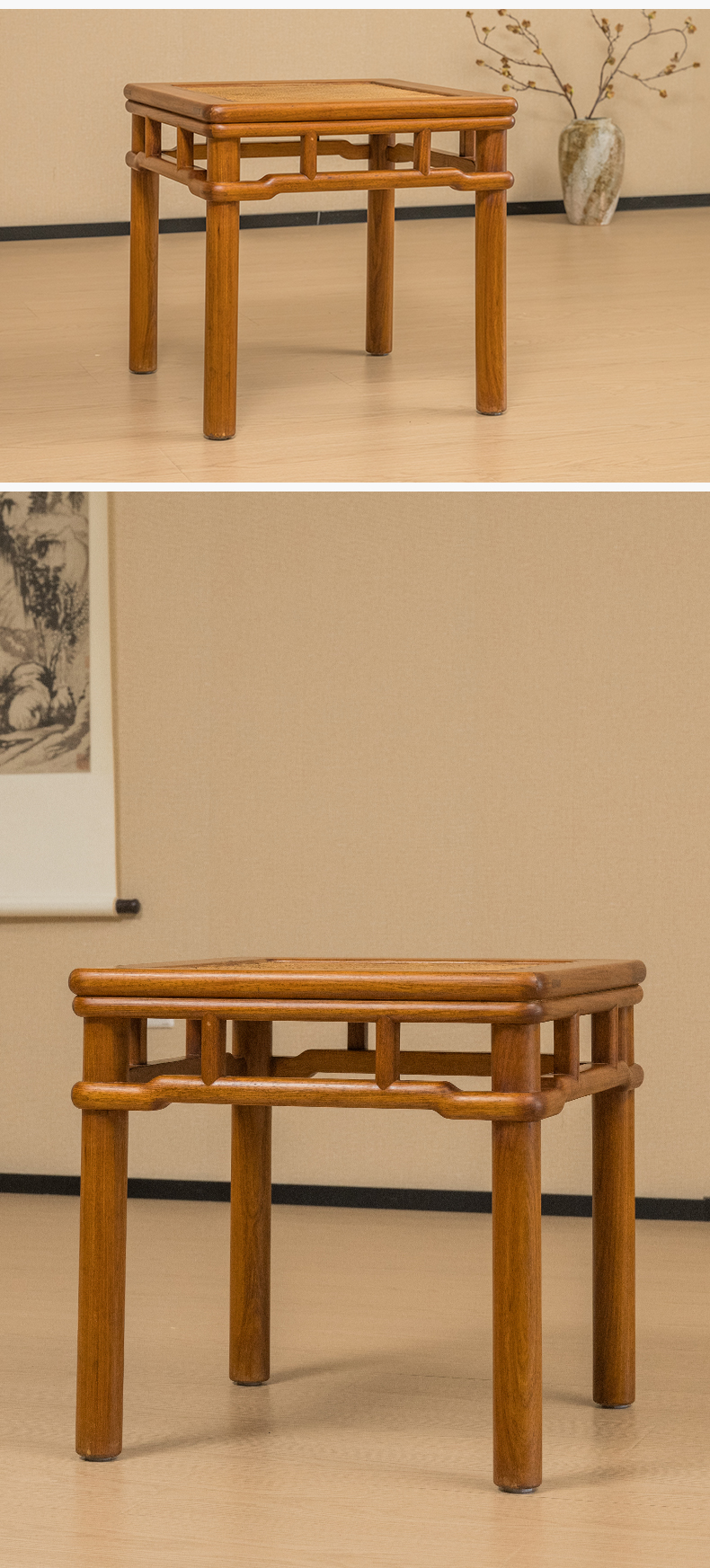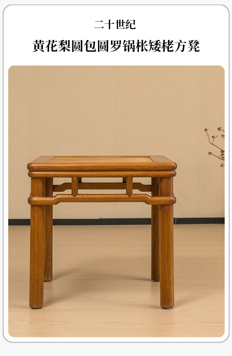 二十世纪 黄花梨圆包圆罗锅枨矮栳方凳