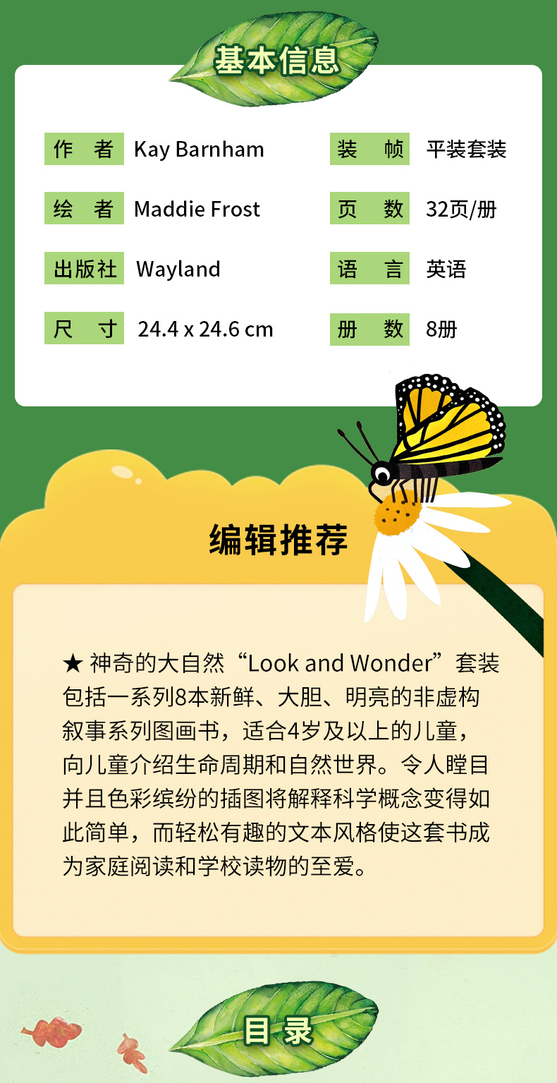 Look and Wonder 神奇的大自然 幼儿科普启蒙8册套装 儿童英语故事绘本 自然科普 水循环 生命循环 天气 英文原版进口图书 赠音频