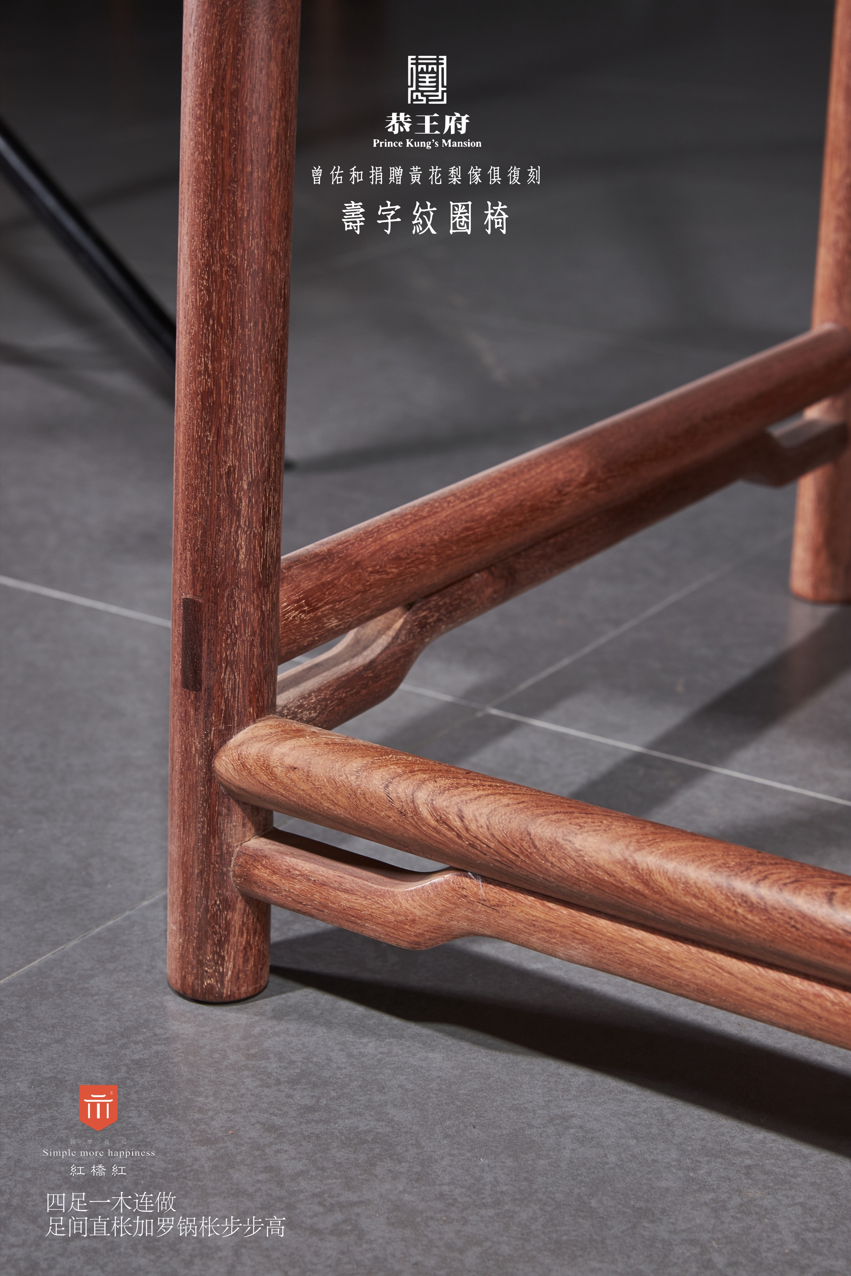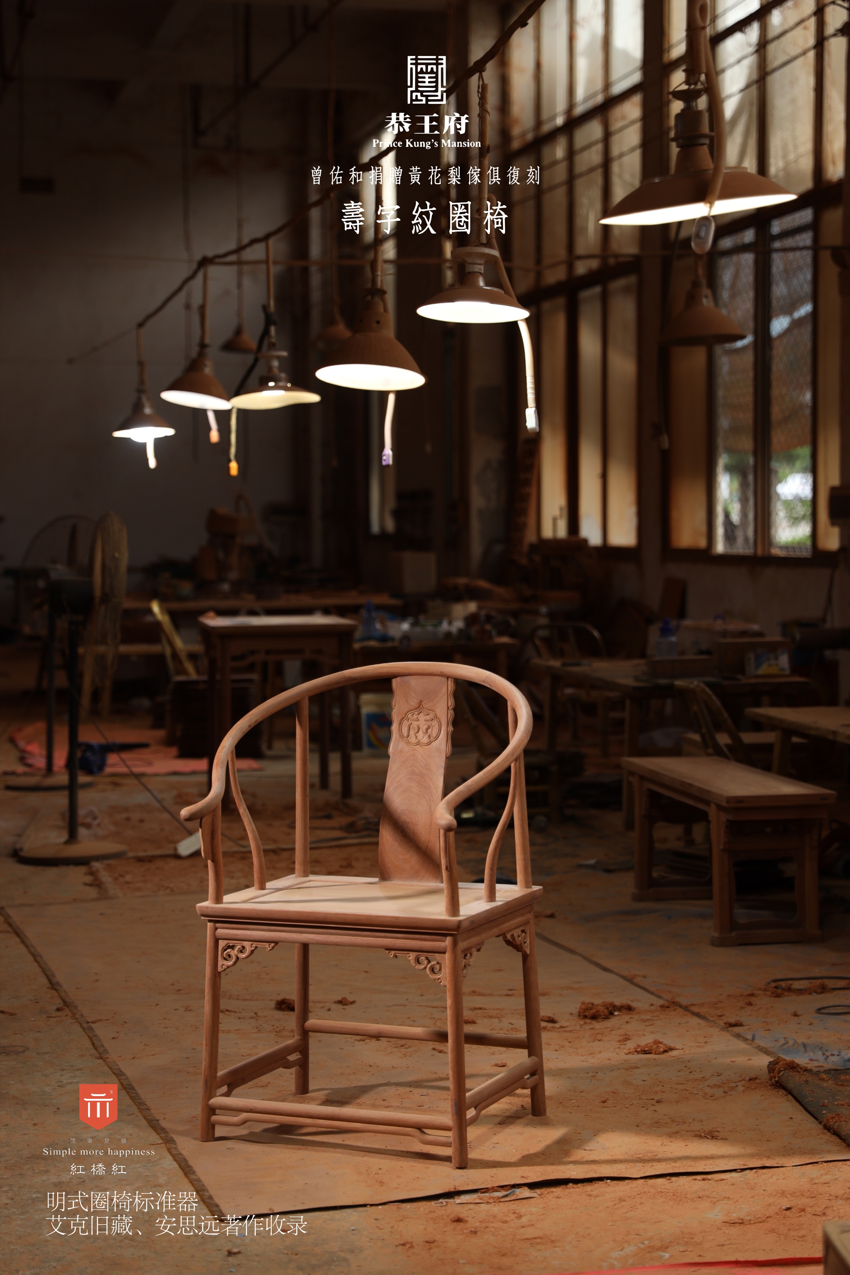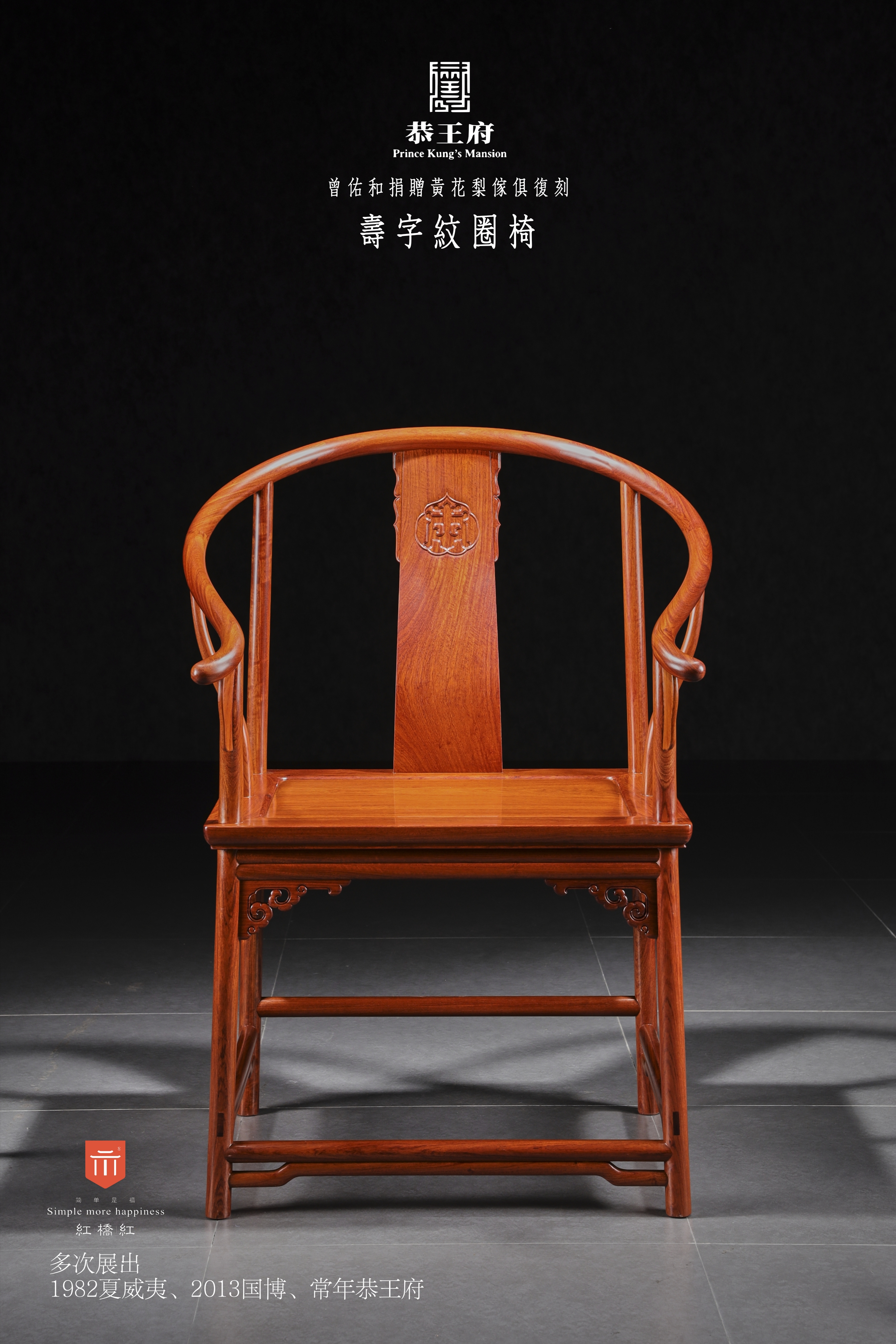 恭王府收藏着一件赫赫有名的黄花梨寿字纹圈椅,它曾被德国学者艾克先生收藏且收入艾克先生所著《中国花梨家具图考》一书,堪称明式标准器,圈椅之最。