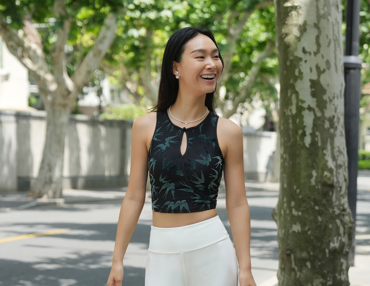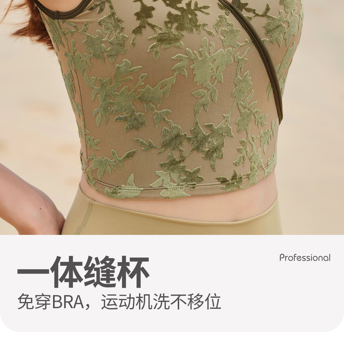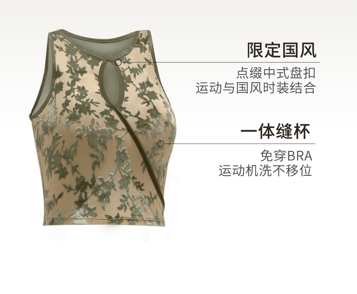 爱暇步优雅国风瑜伽背心女收副乳2025新款健身新中式瑜伽服一体杯A25216NAT