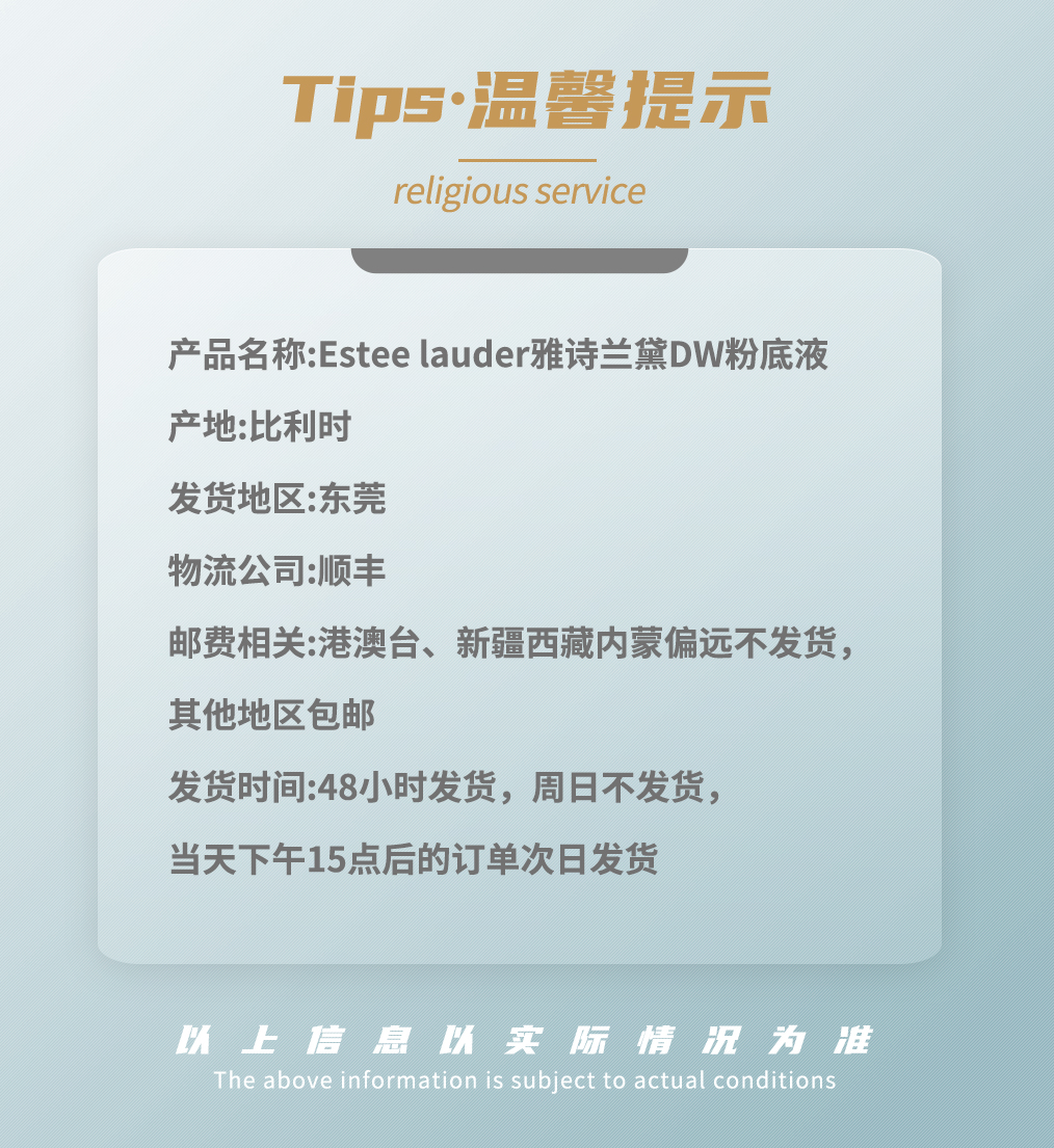 Estee lauder雅诗兰黛DW粉底液 控油保湿 提亮遮瑕 持久不脱妆 30ml/瓶