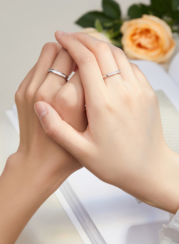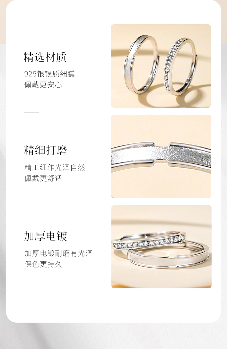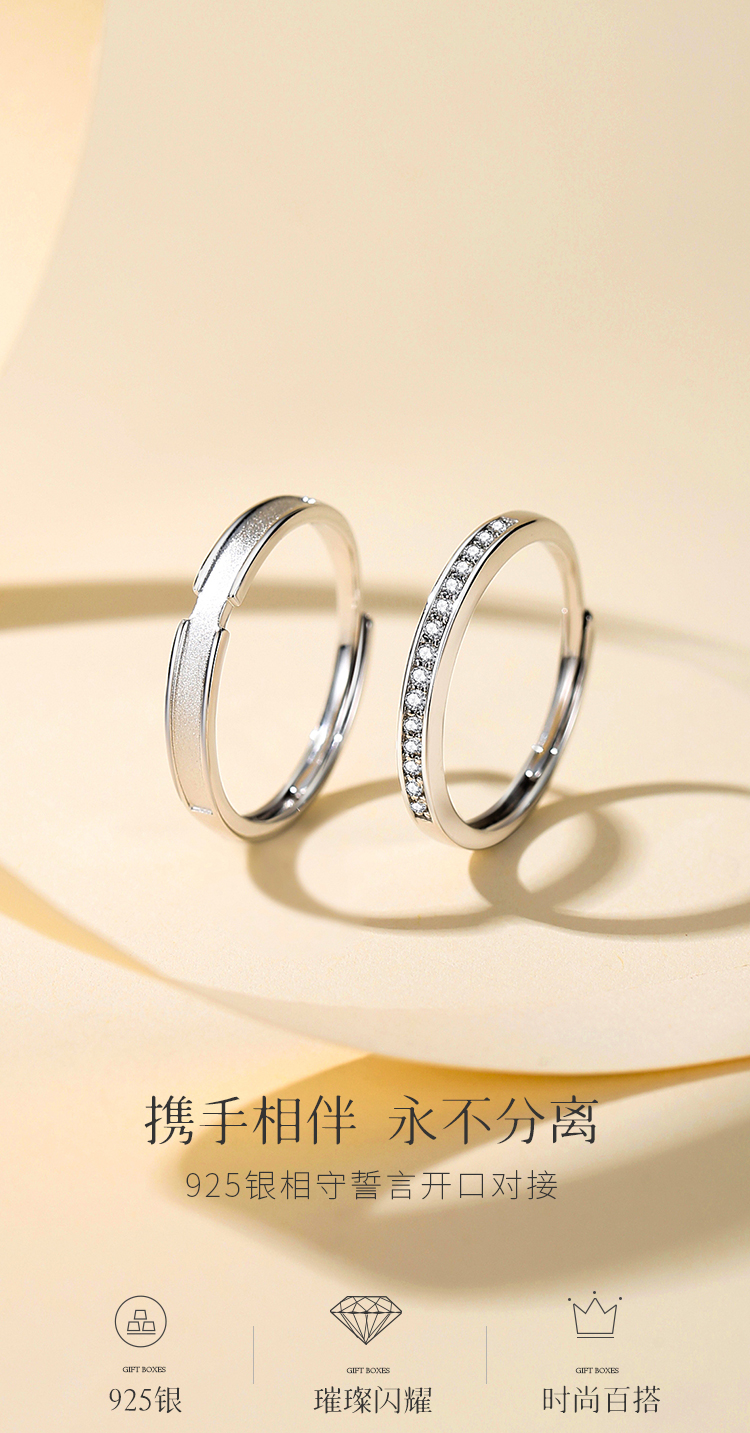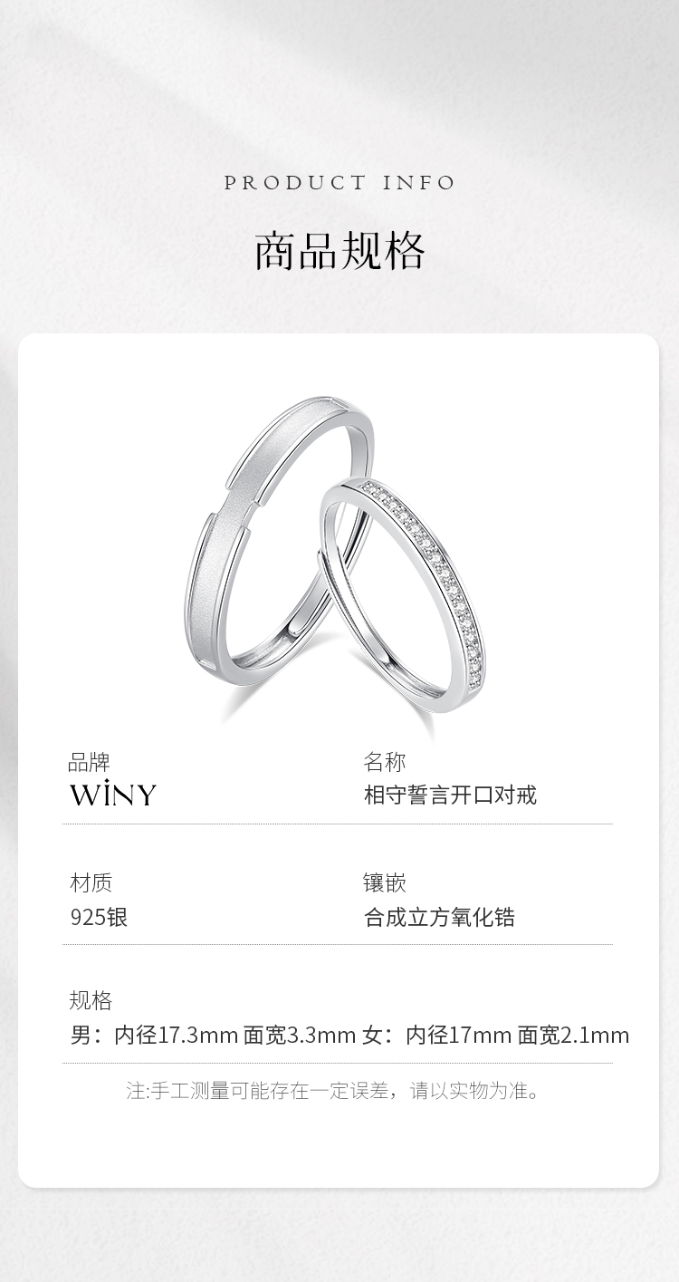 Winy925纯银相守誓言情侣戒指男女对戒可定制刻字送女友生日纪念日礼物