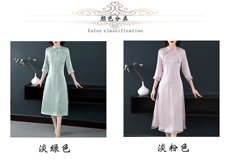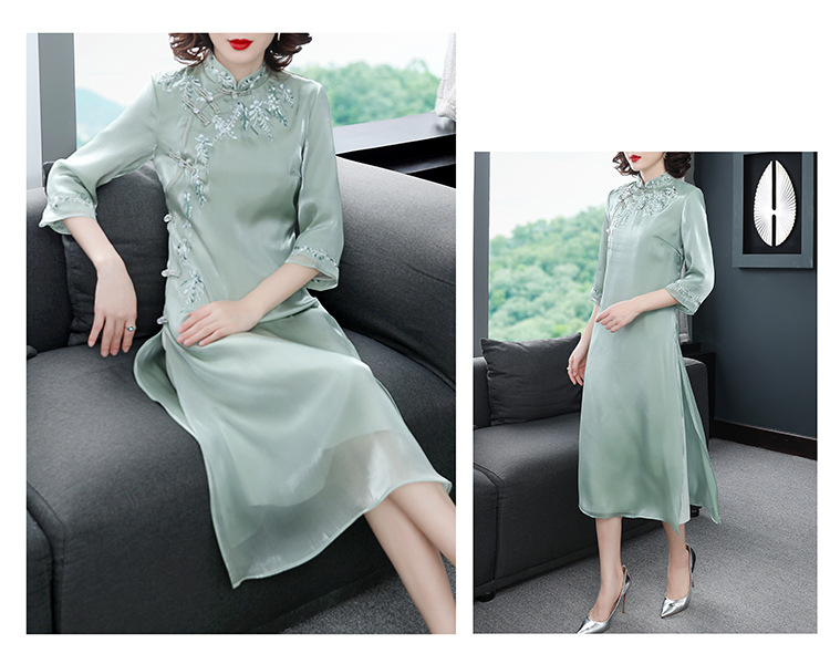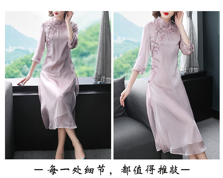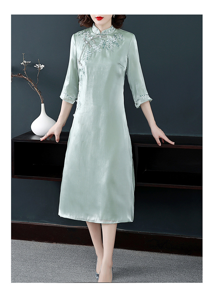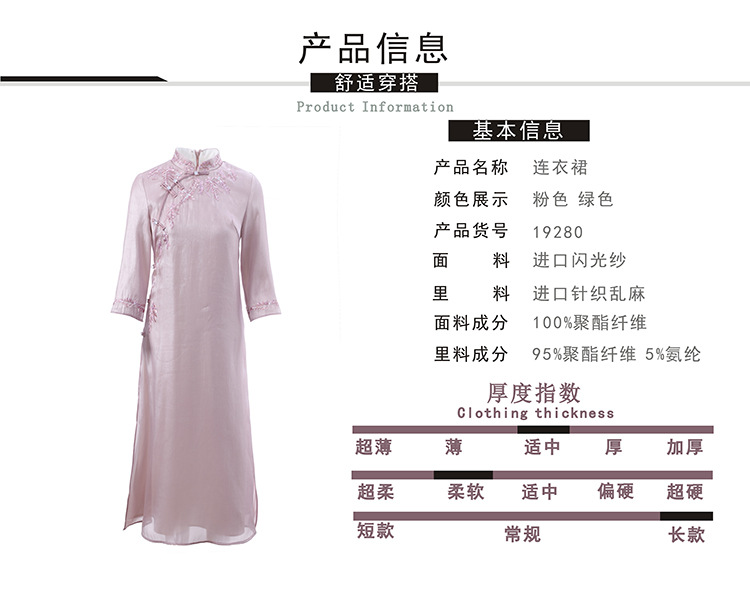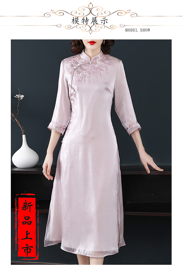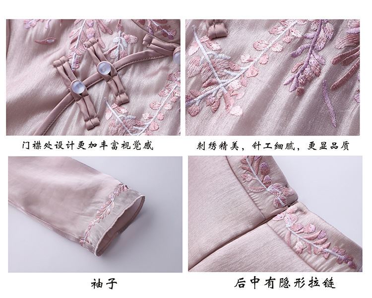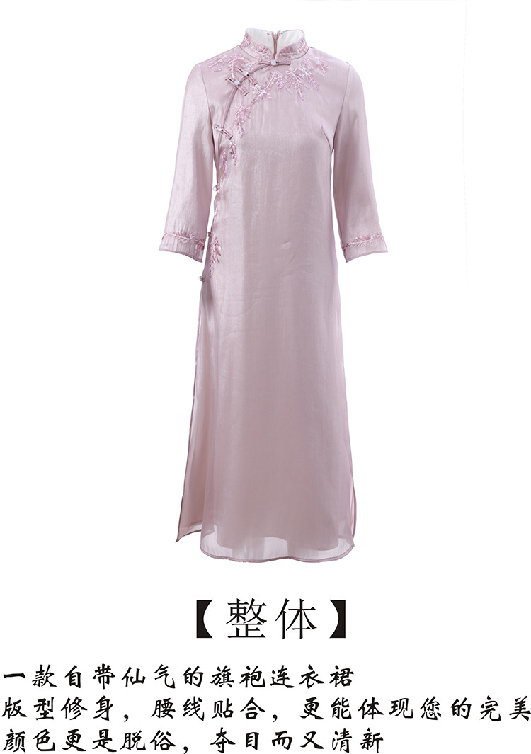 YFN-19280中国风刺绣宽松改良旗袍裙中长款