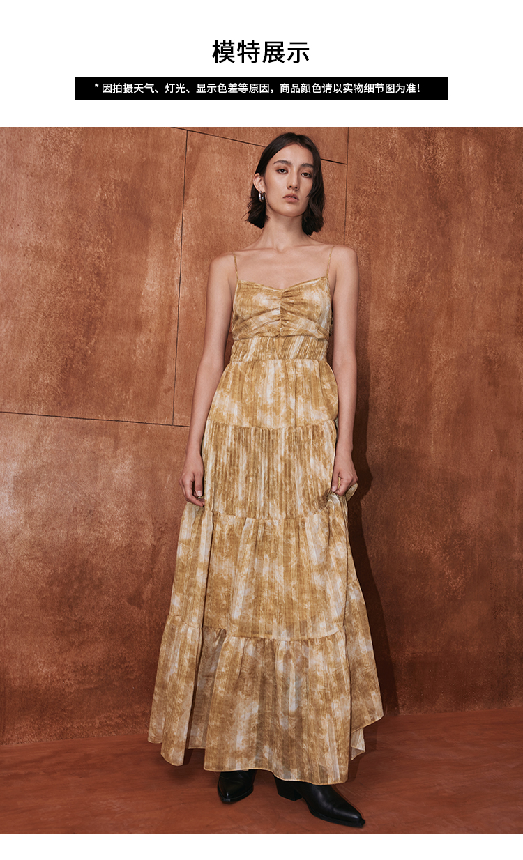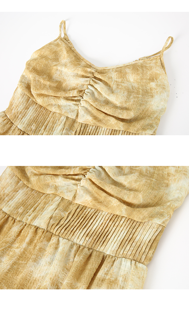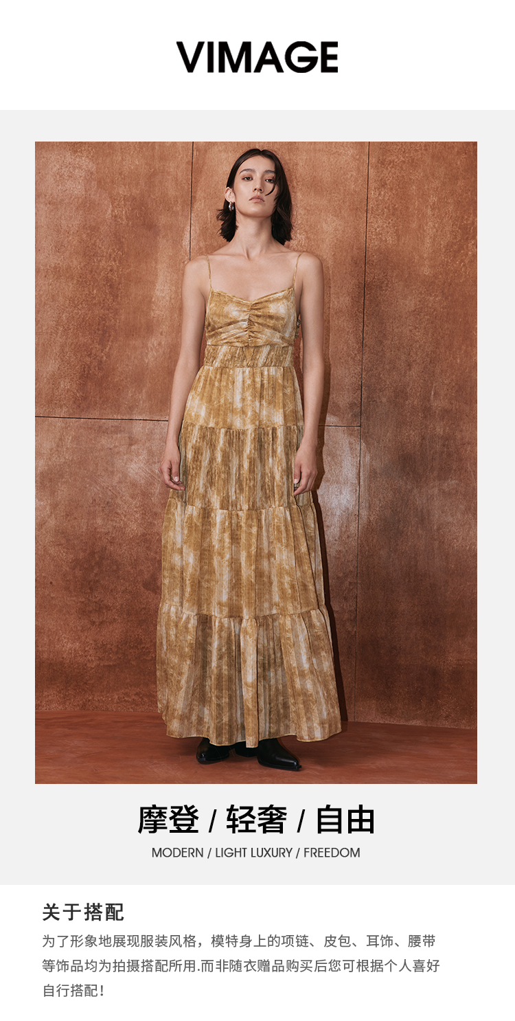 VIMAGE纬漫纪秋季新款扎染印花显瘦高腰性感吊带连衣裙V2007610
