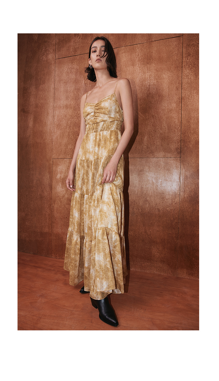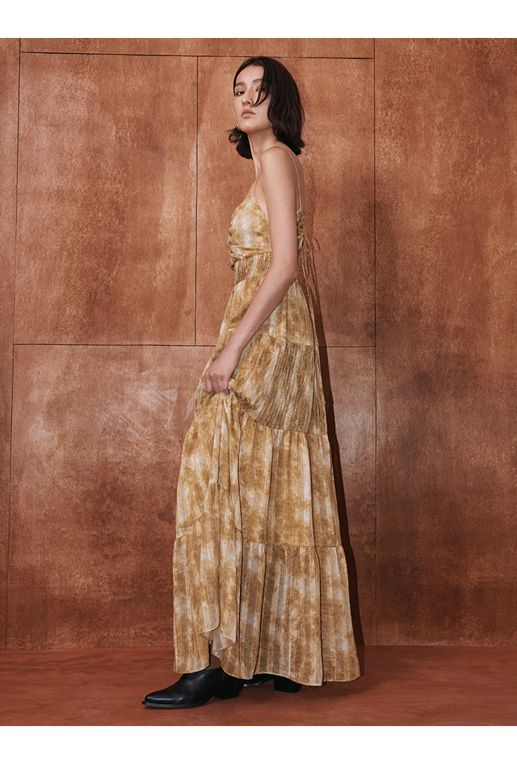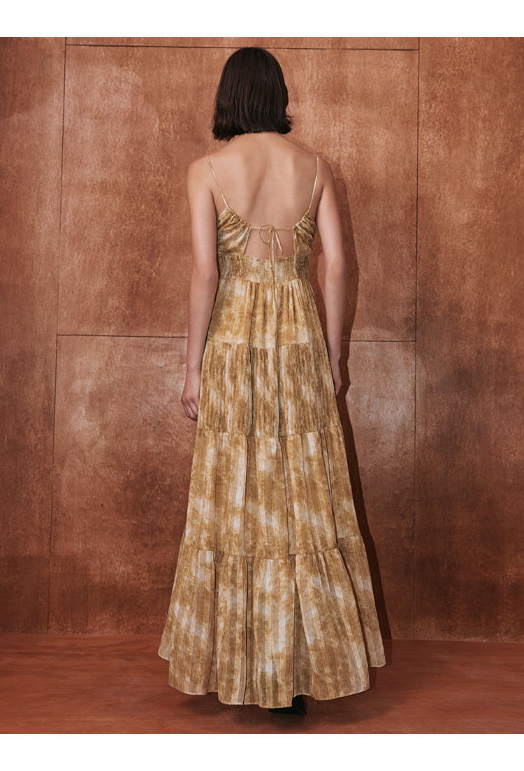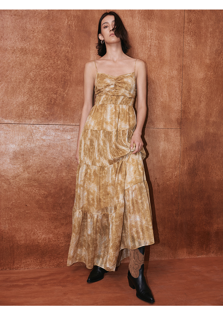 VIMAGE纬漫纪秋季新款扎染印花显瘦高腰性感吊带连衣裙V2007610
