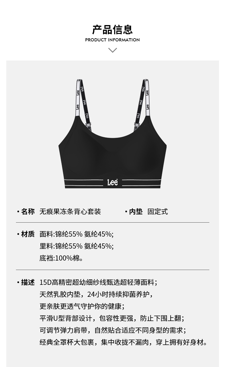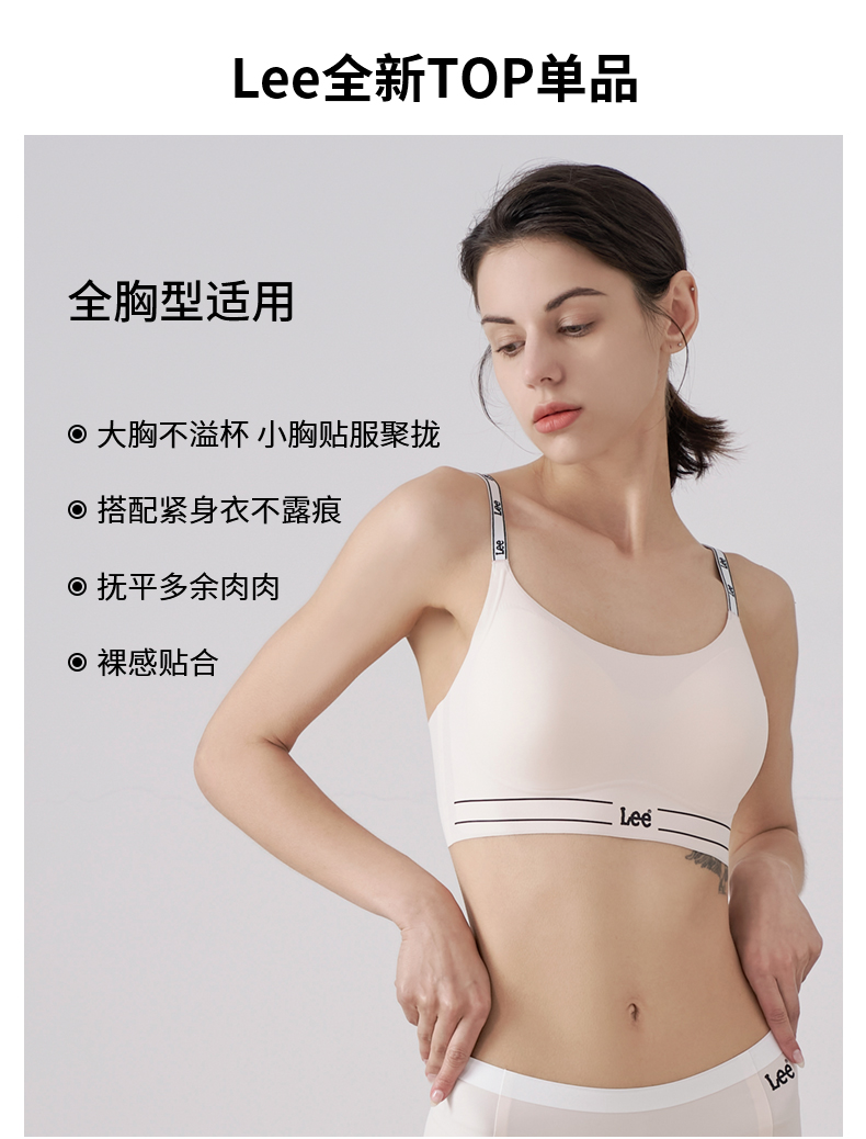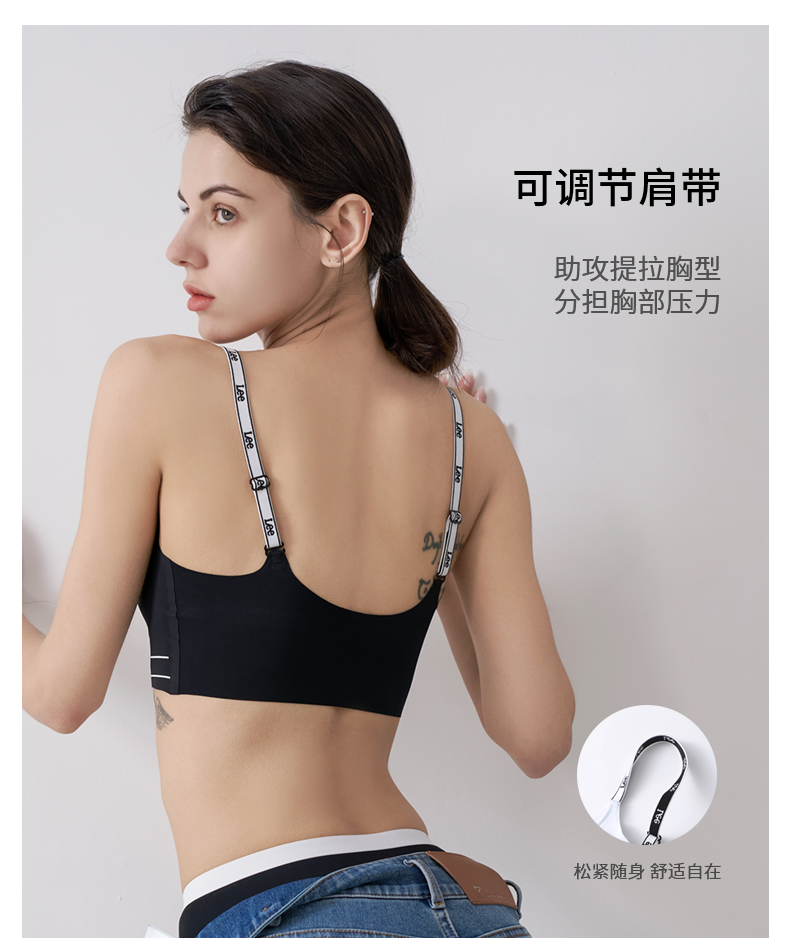 lee字母肩带bra背心轻薄无痕内衣文胸套装
