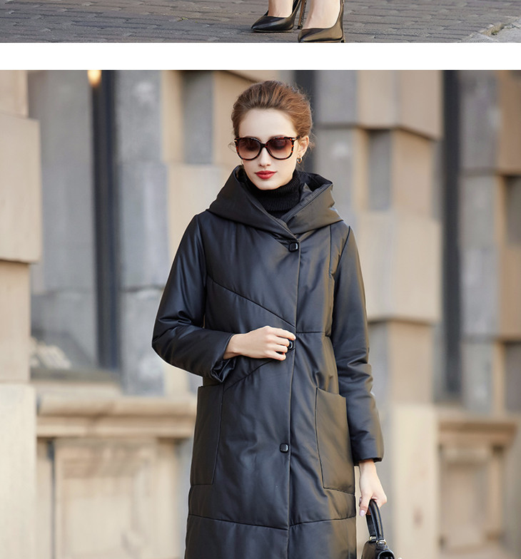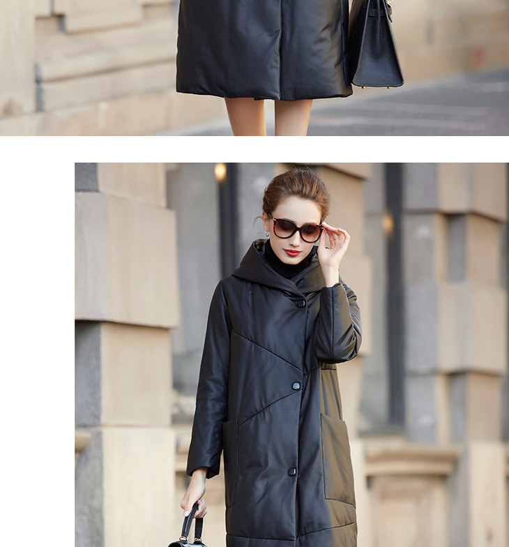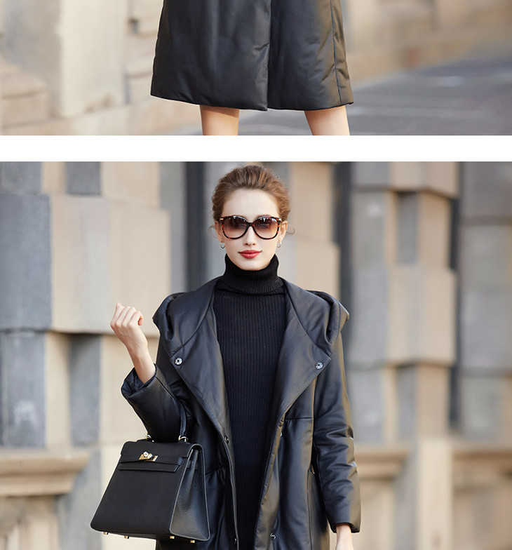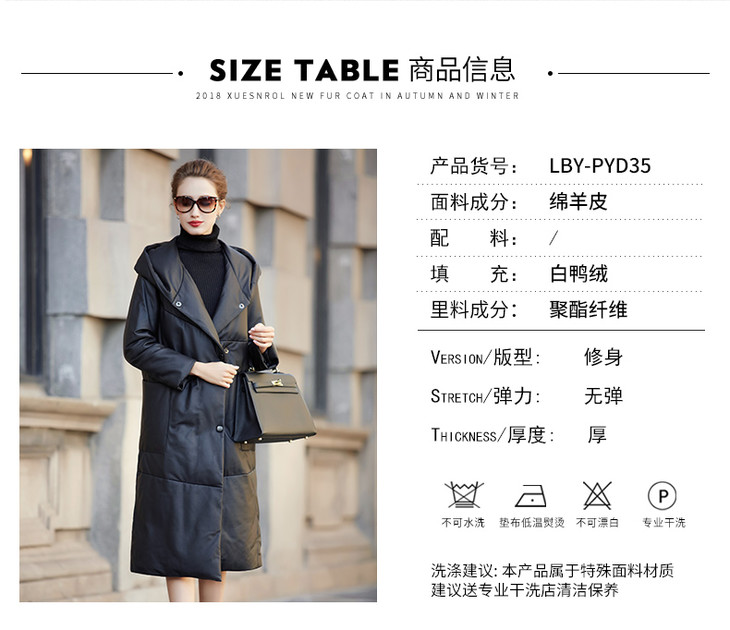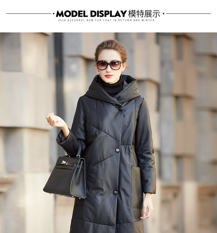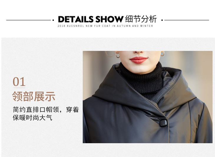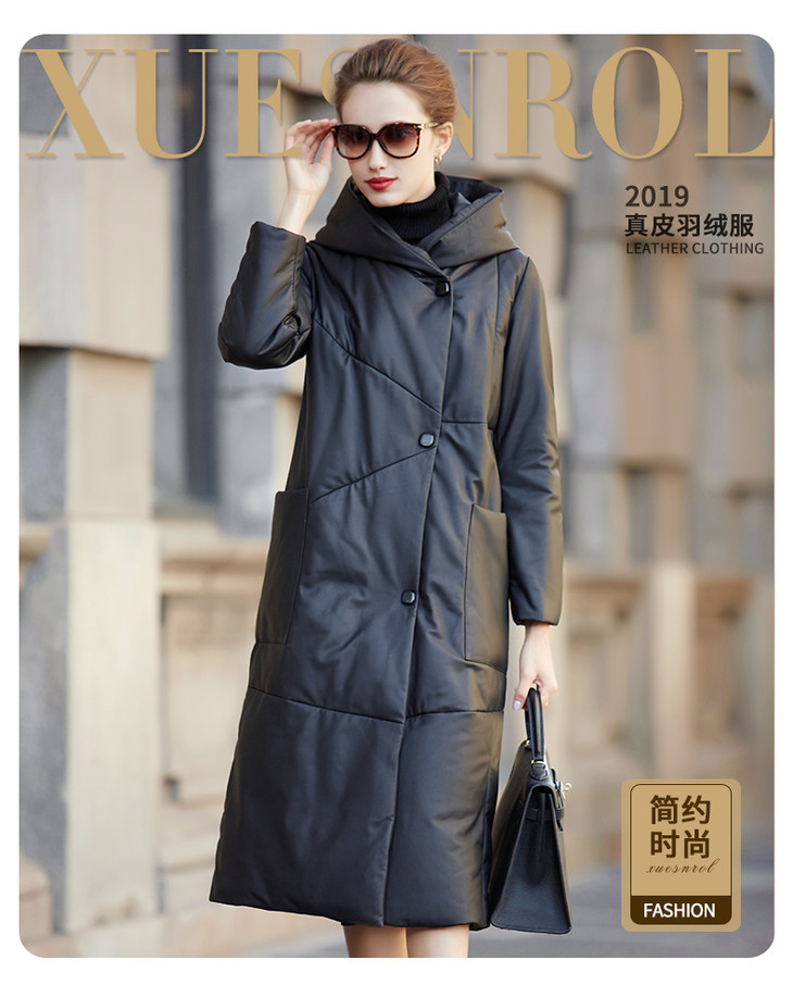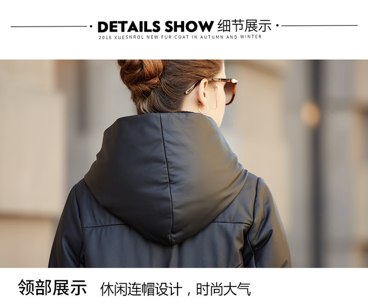 BM-9930冬季新款女海宁绵羊皮皮衣连帽宽松长款真皮羽绒服外套