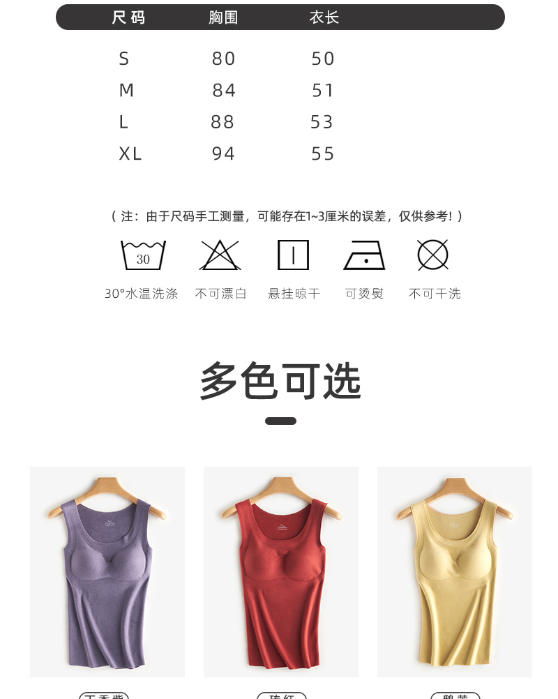 weyo女士秋冬双面抗菌亲肤舒适免穿文胸保暖打底背心A10102 商品图2