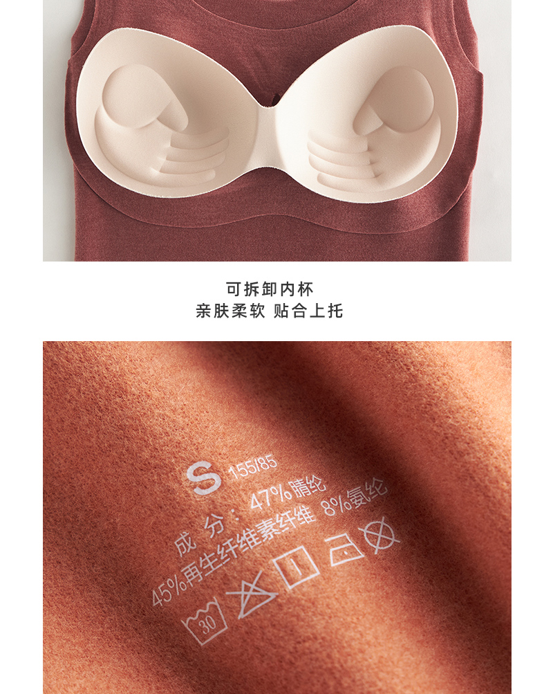 weyo女士秋冬双面抗菌亲肤舒适免穿文胸保暖打底背心A10102 商品图1
