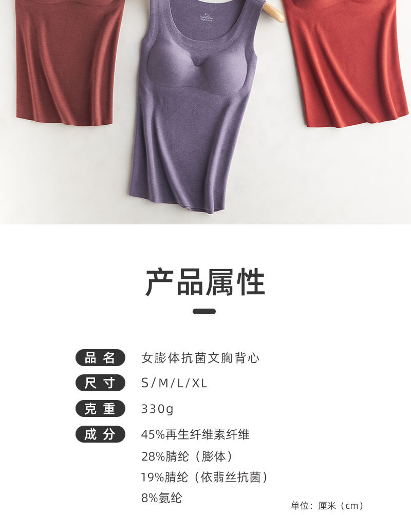 weyo女士秋冬双面抗菌亲肤舒适免穿文胸保暖打底背心A10102 商品图3