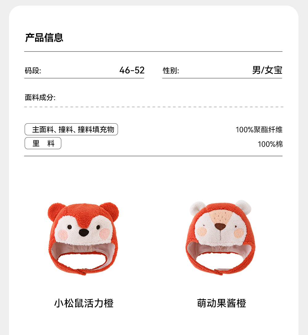 【新会员4折内购】英氏儿童帽子秋冬保暖防寒婴儿帽子男女宝帽子新款