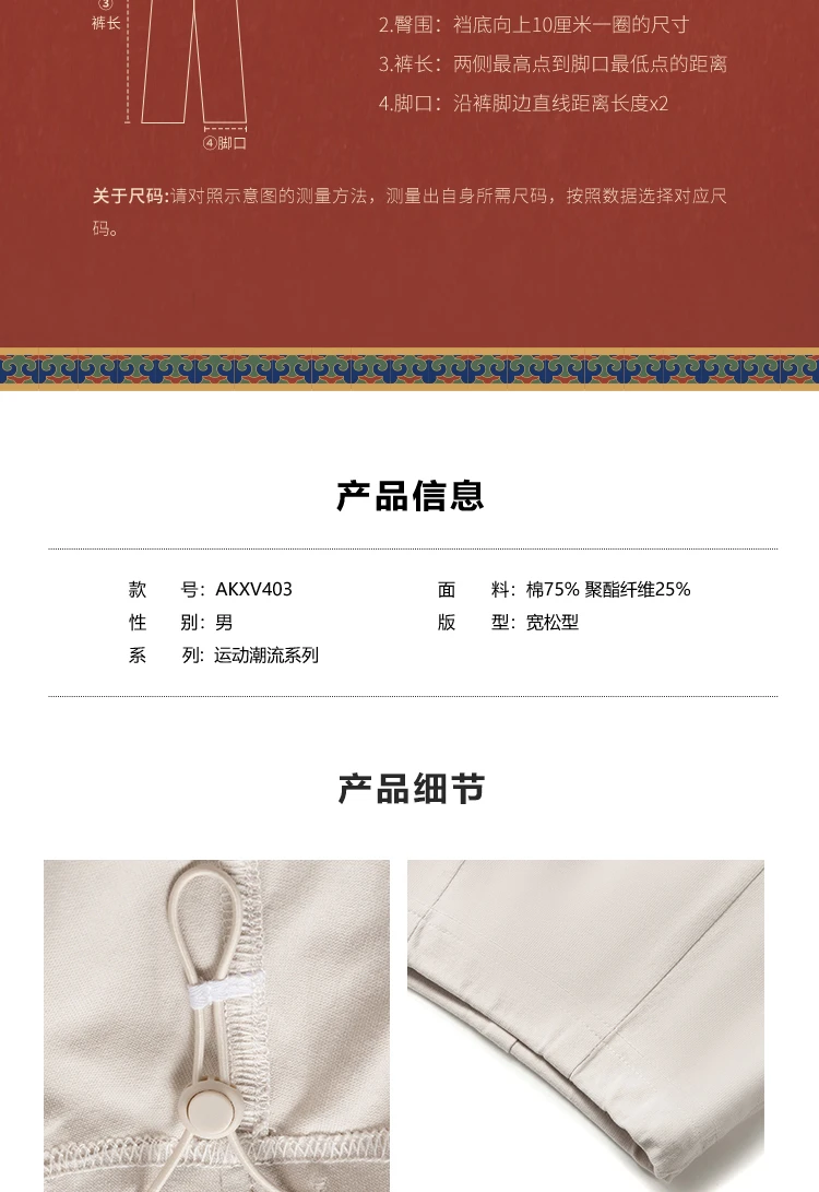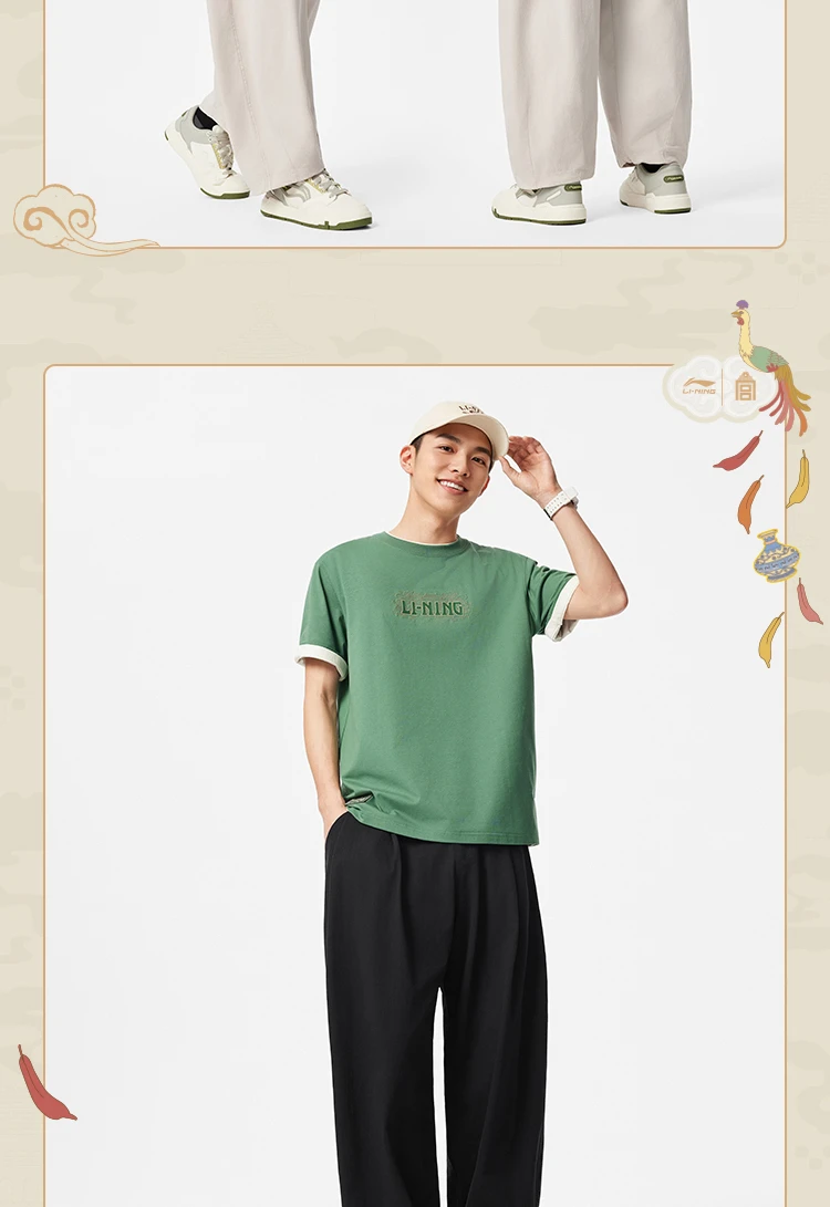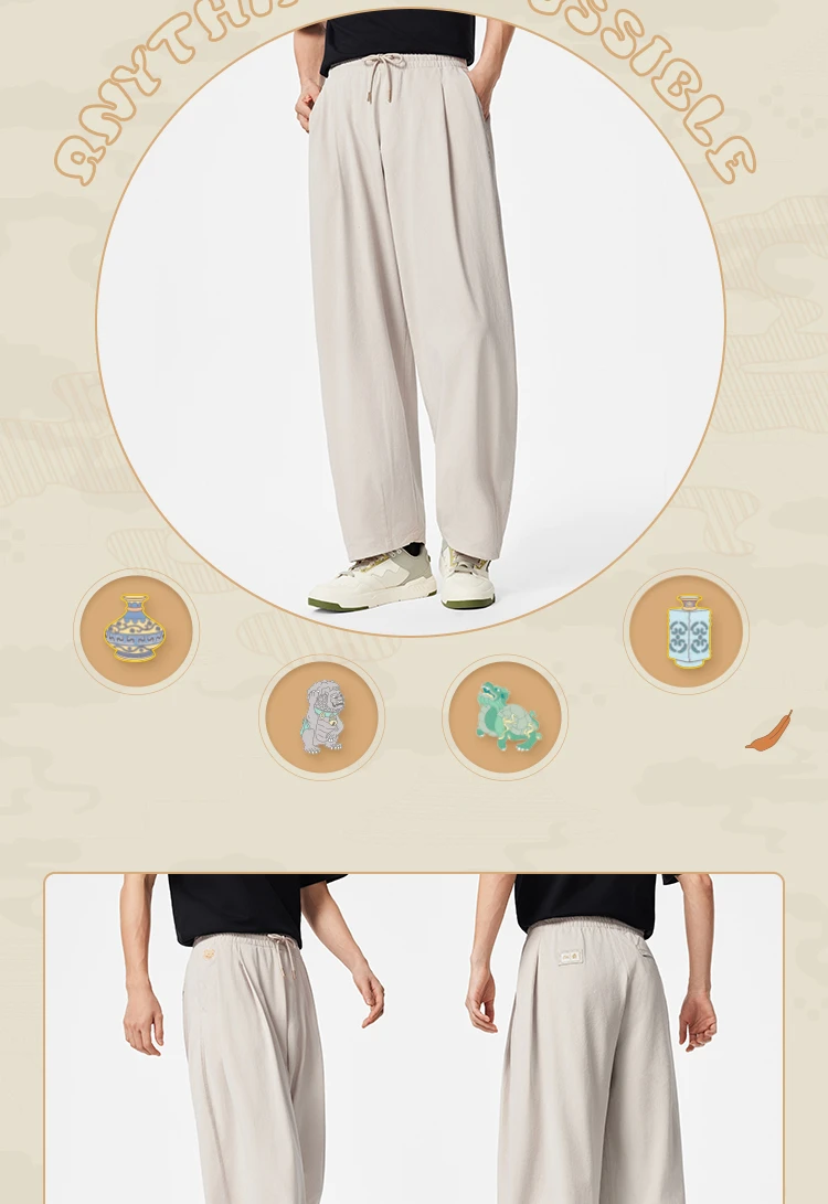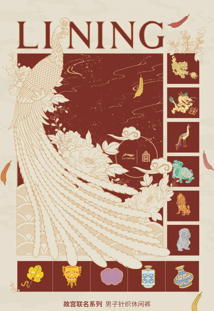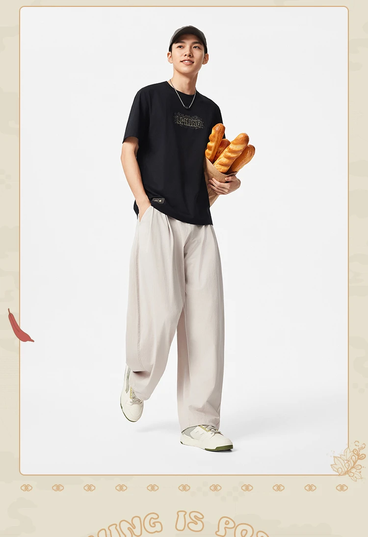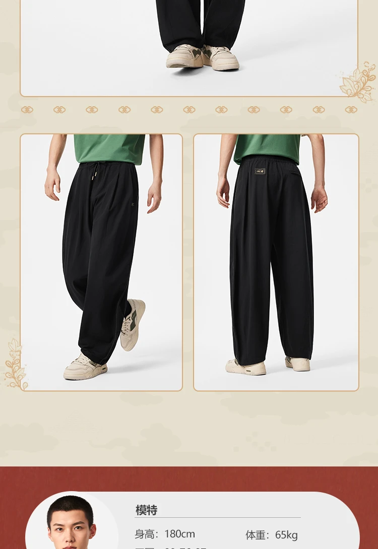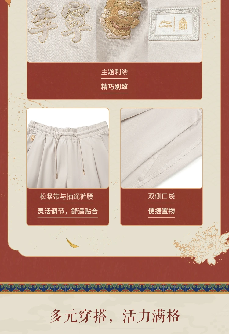 李宁中国文化系列故宫联名男子直筒宽松针织休闲裤AKXV403