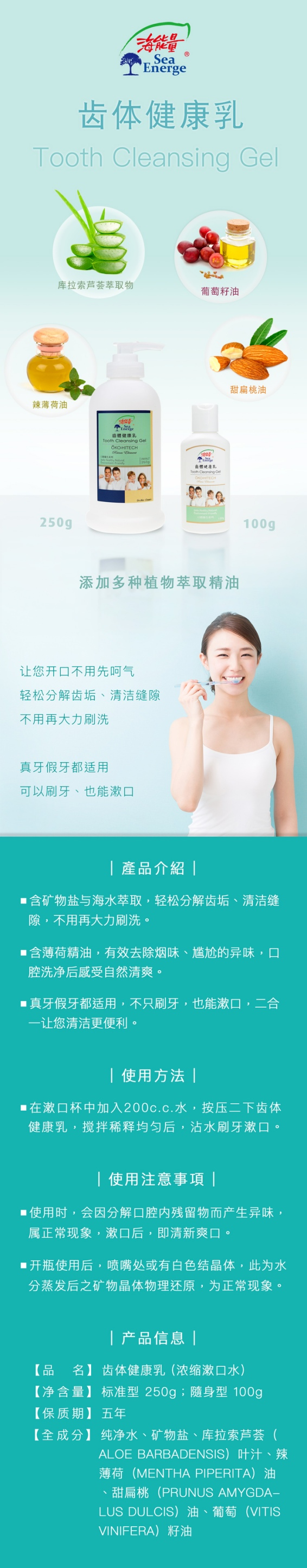 齿体健康乳 | 100g/250g 牙膏漱口水替代 口腔清洁 海能量(漱口杯中加入200ml水,按压加入2泵,搅拌均匀后,含水刷牙漱口)