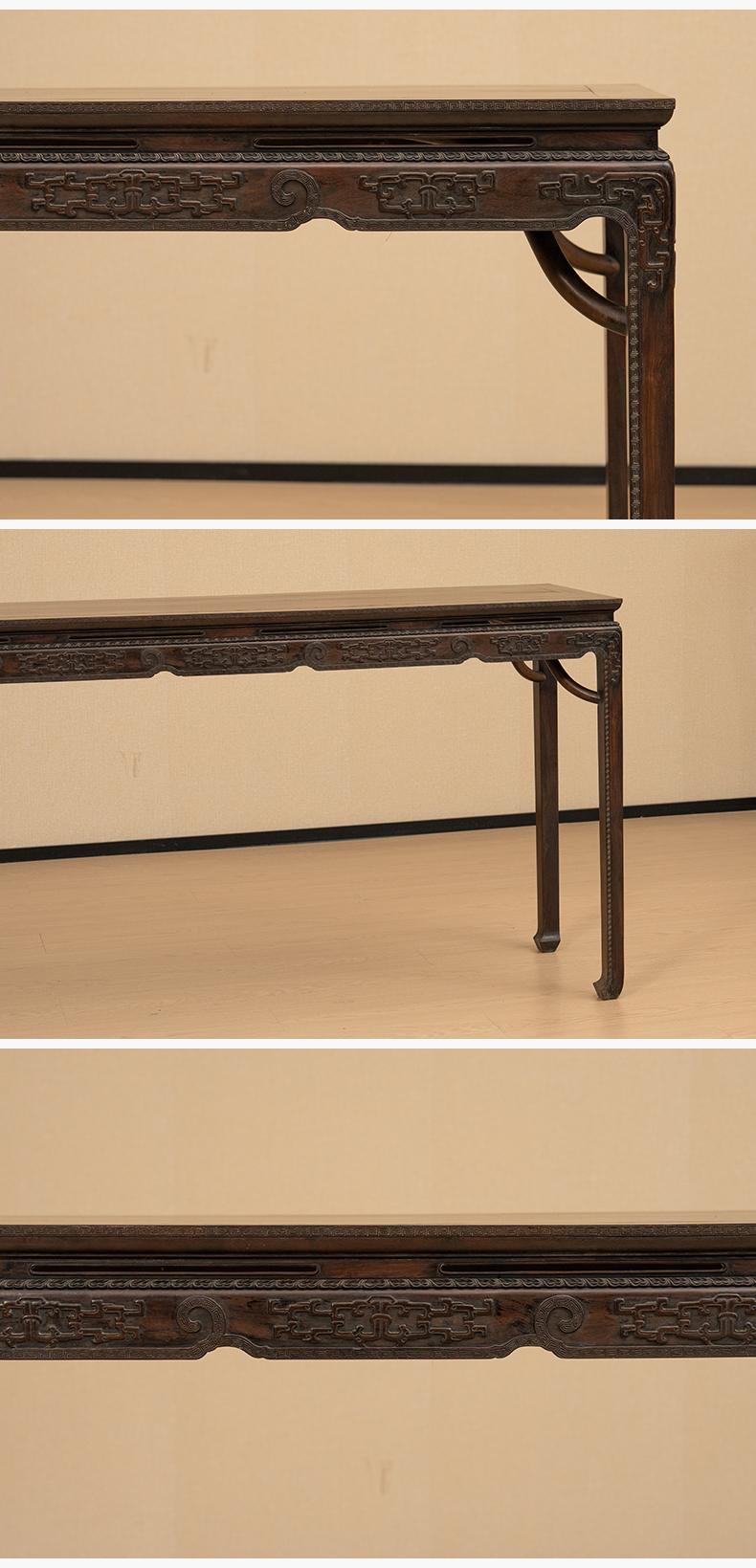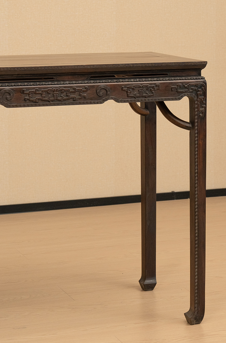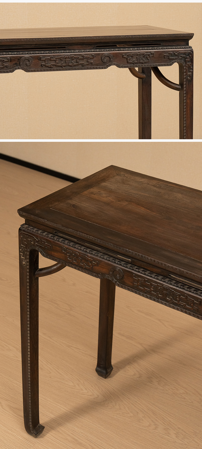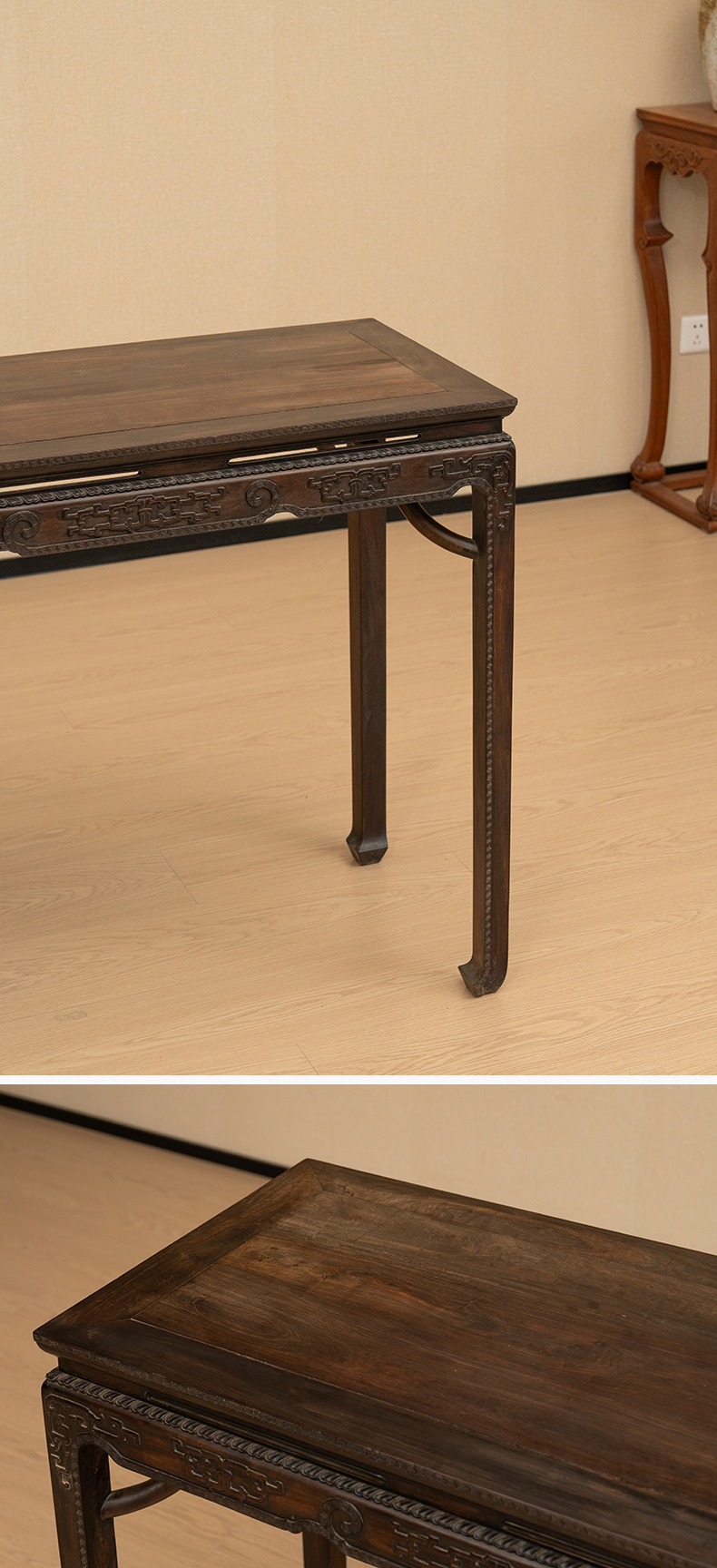 清 紫檀霸王枨马蹄腿拐子纹条桌