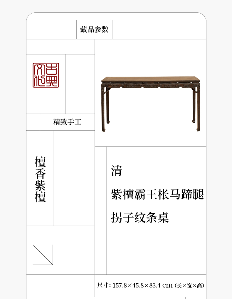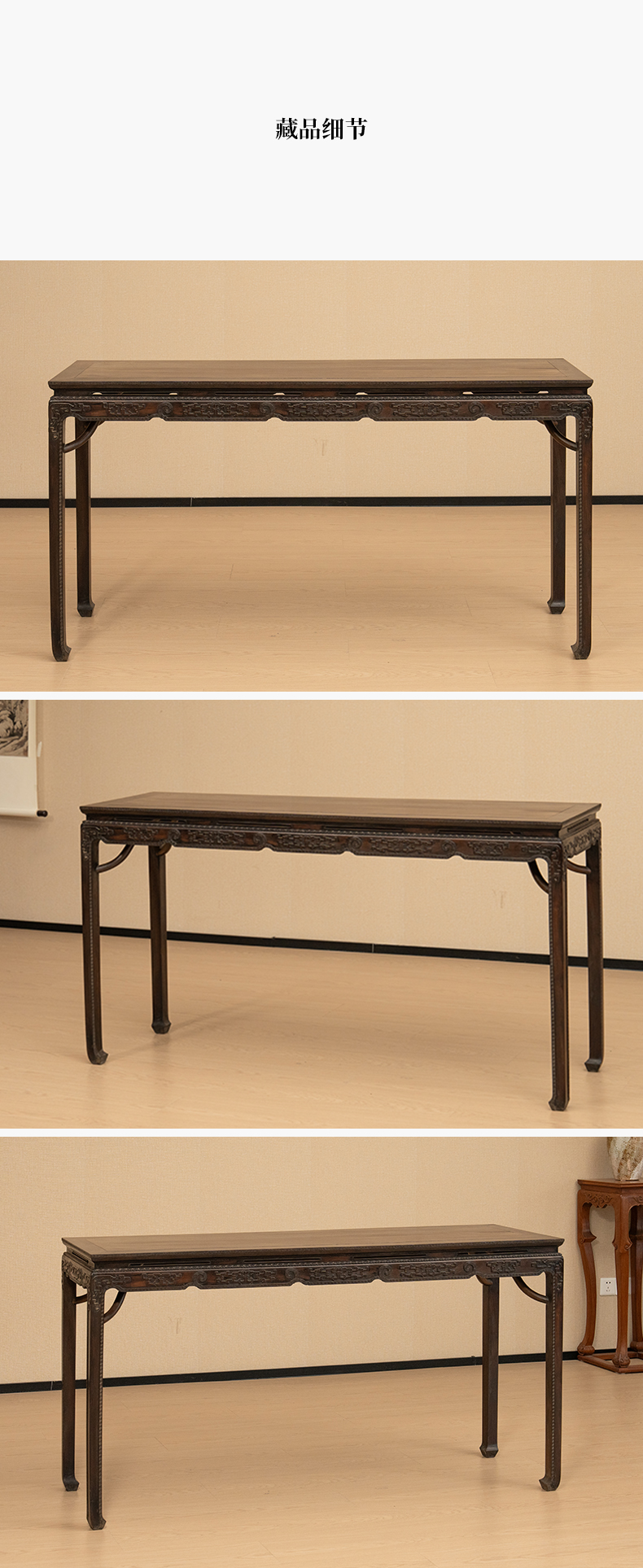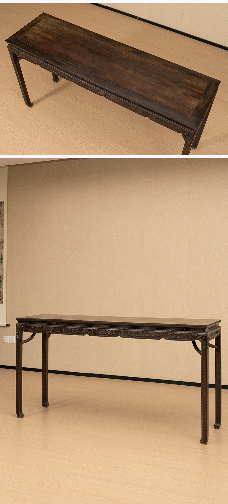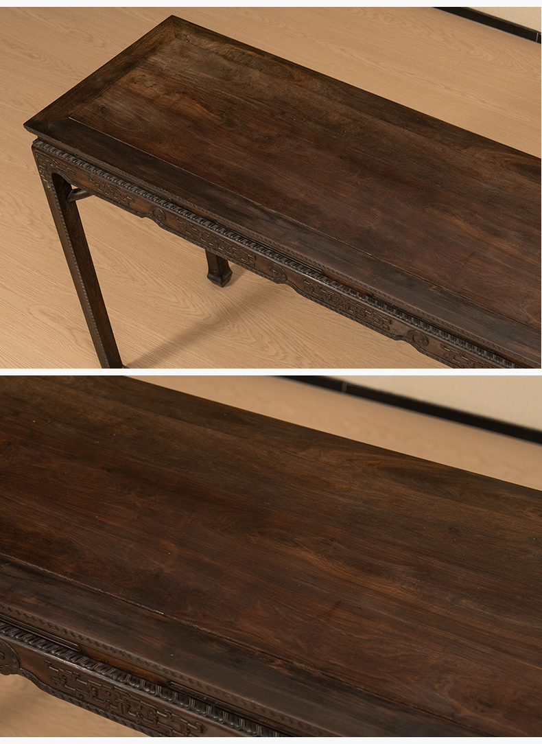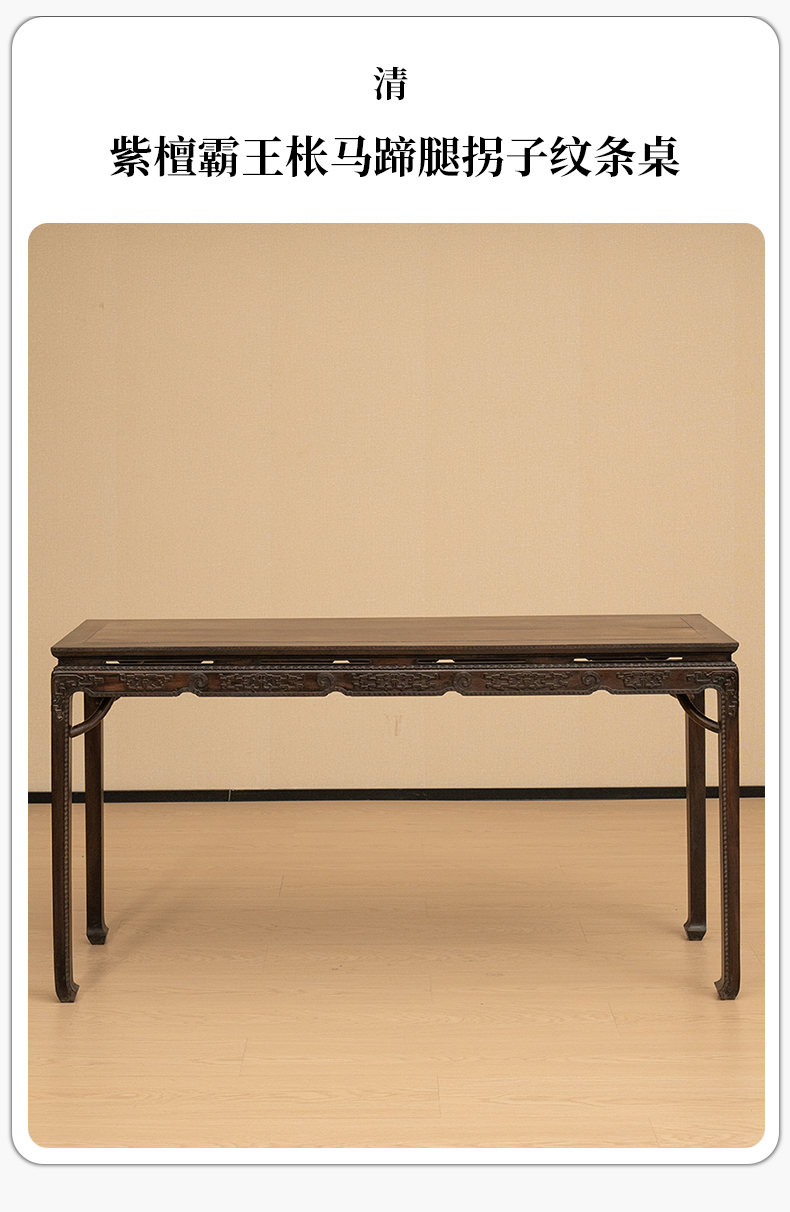 清 紫檀霸王枨马蹄腿拐子纹条桌