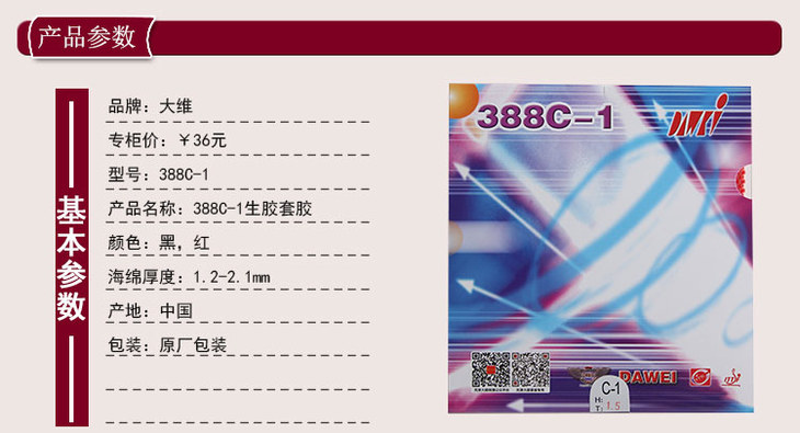 DAWEI大维 生胶套胶388C-1 颗粒胶 正品