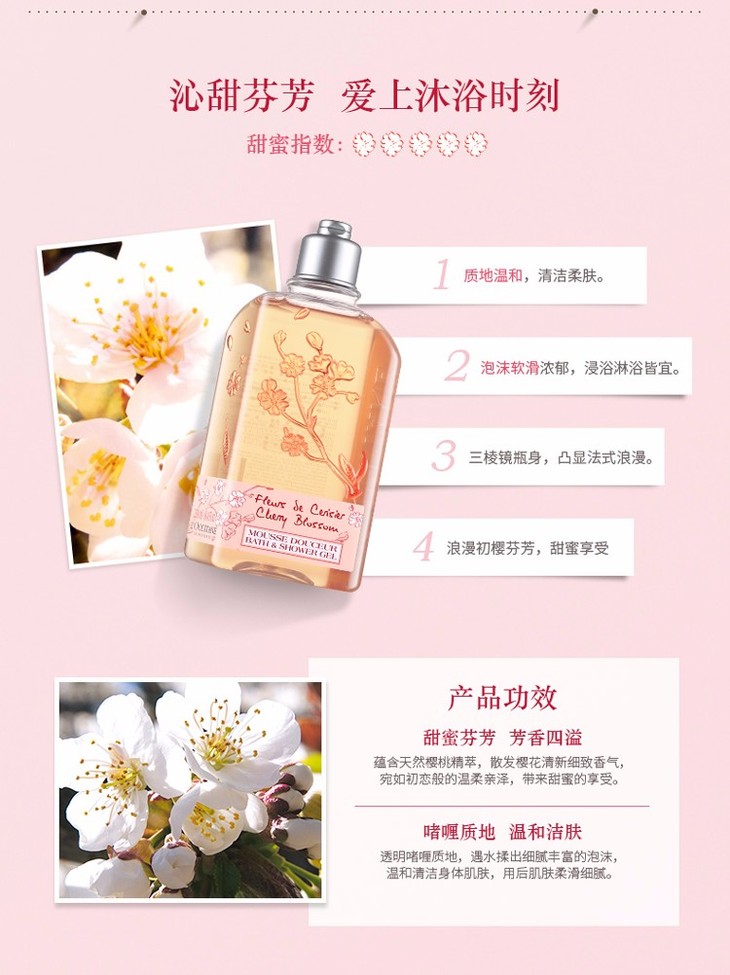 法国L'OCCITANE欧舒丹樱花滋润保湿沐浴露250ml