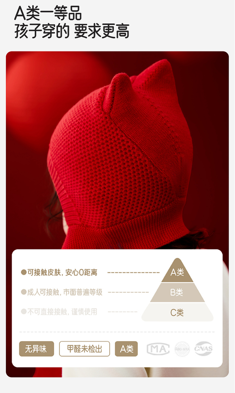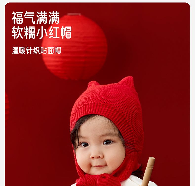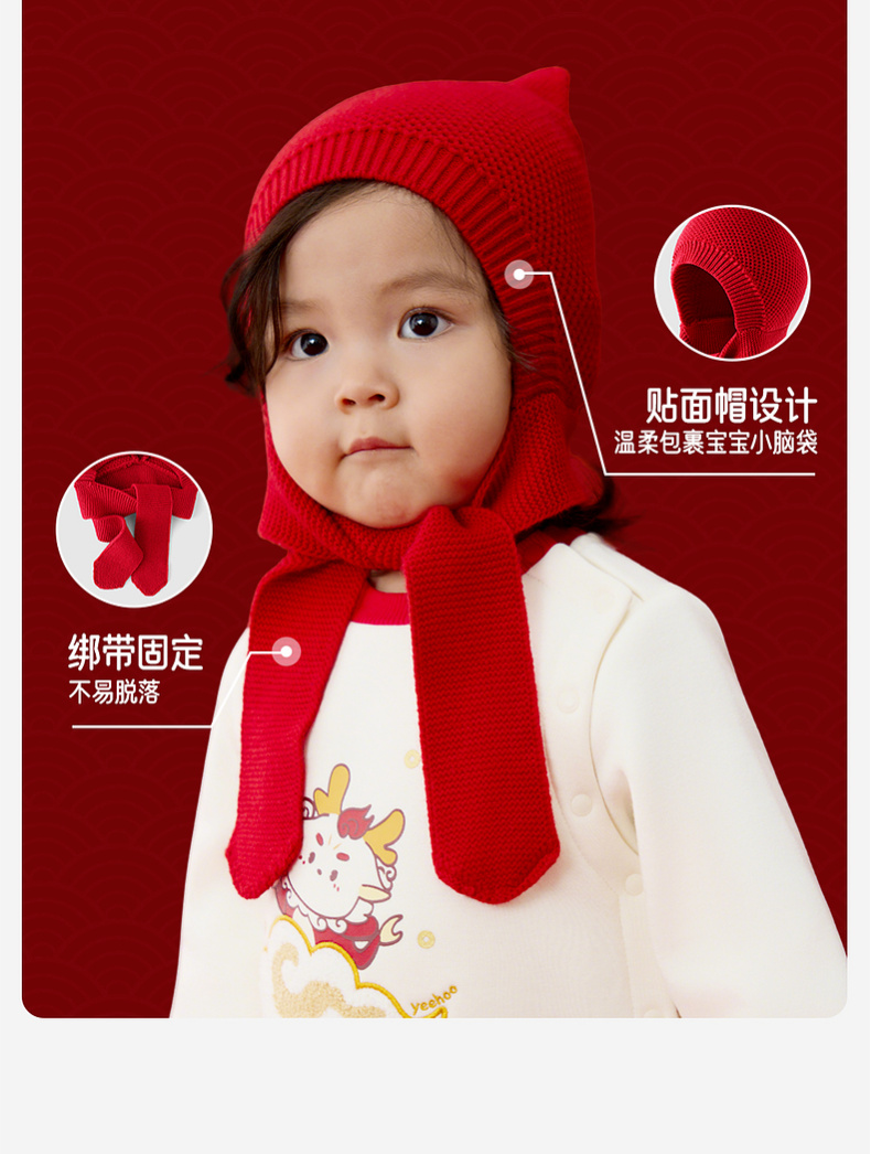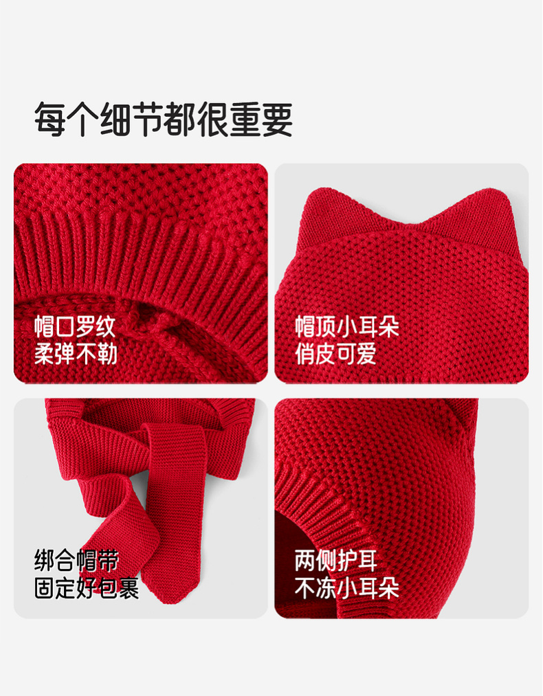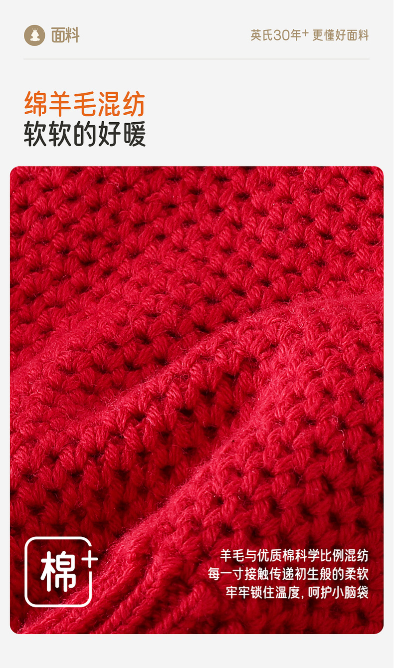 英氏儿童毛线帽围脖针织帽带围巾围脖护耳保暖新年喜庆秋冬新款