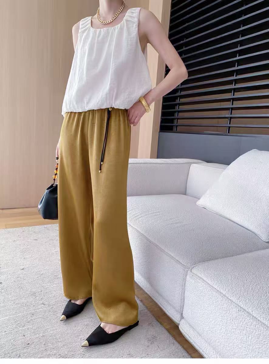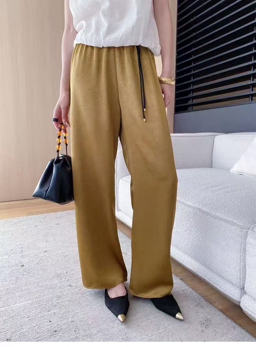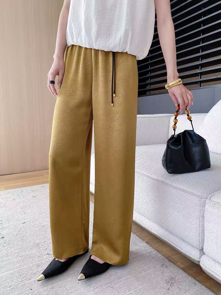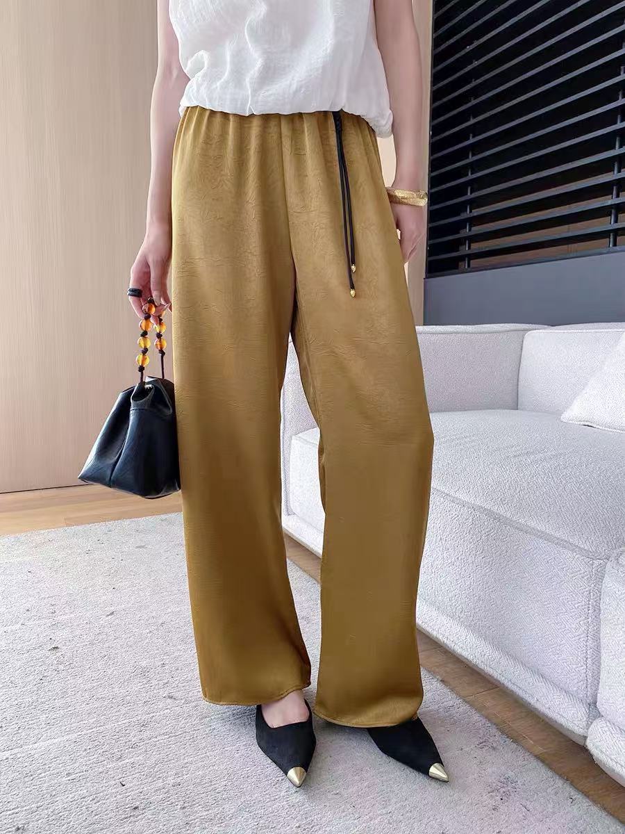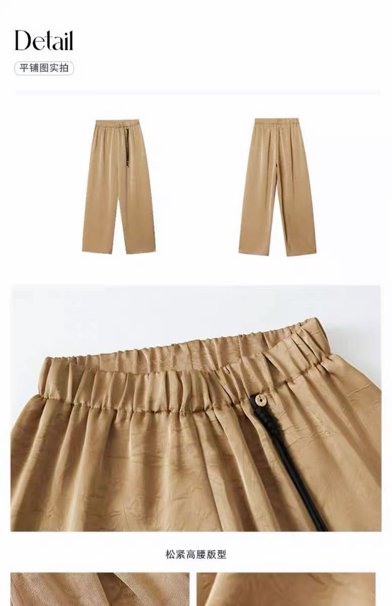 特卖福利~顺滑肌理纹缎面新中式吊坠松紧腰阔腿裤-喜出