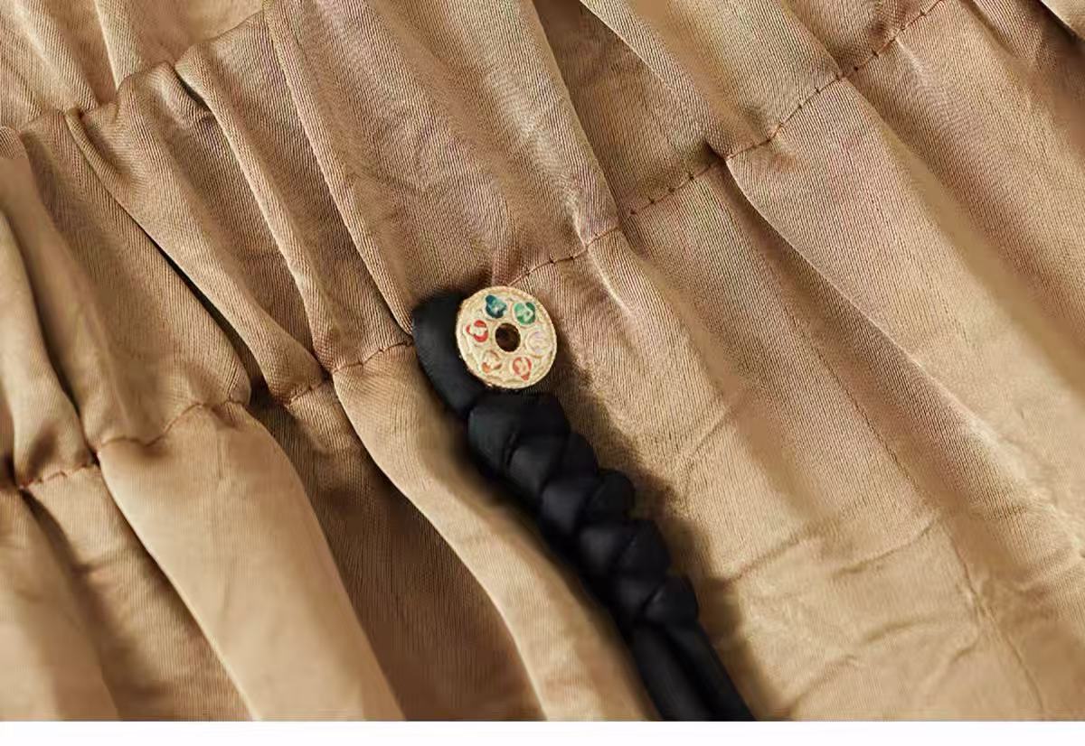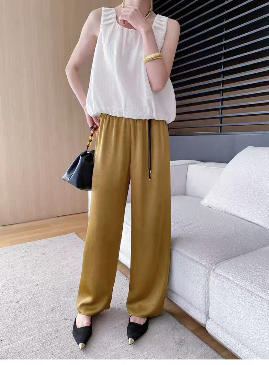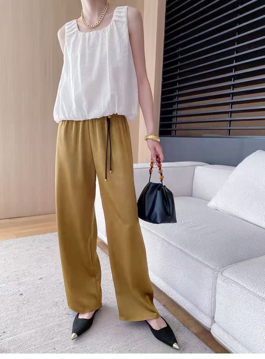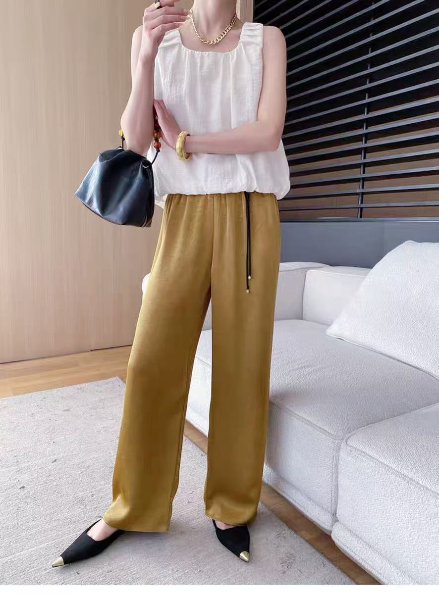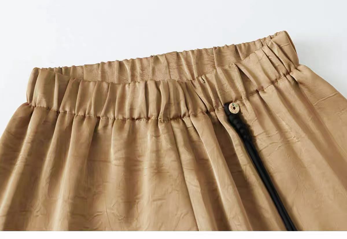 特卖福利~顺滑肌理纹缎面新中式吊坠松紧腰阔腿裤-喜出