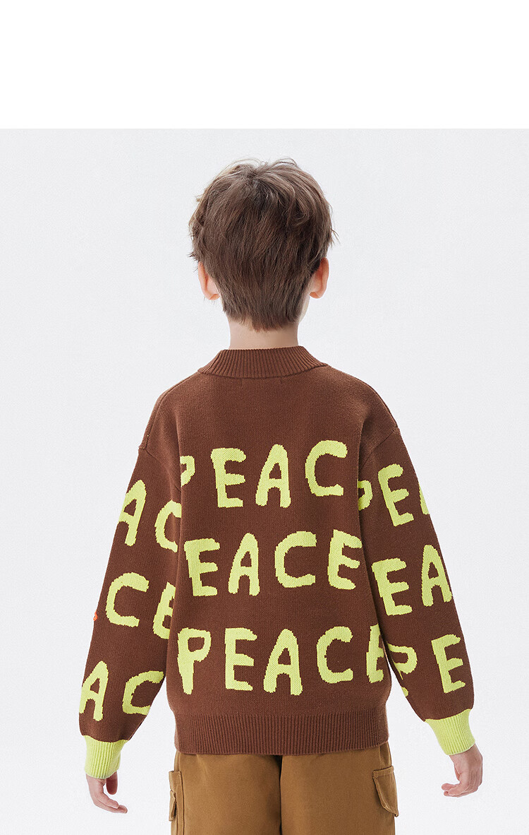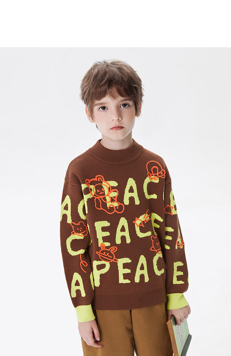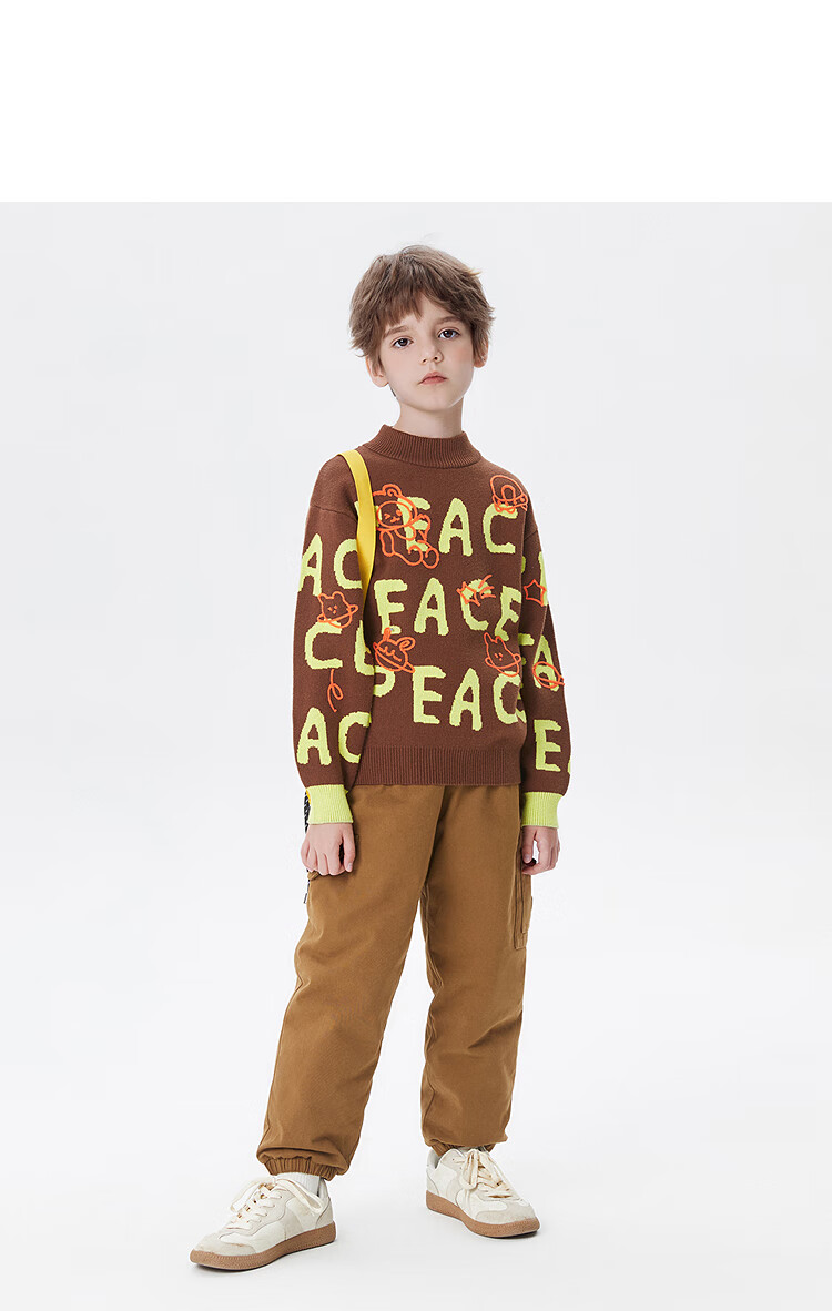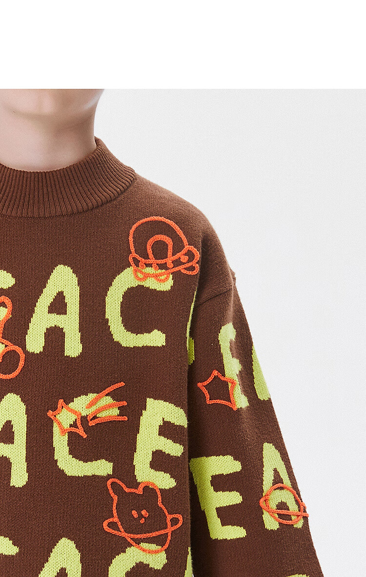 【MQD】童装男大童冬新款满版字母休闲半高领针织衫