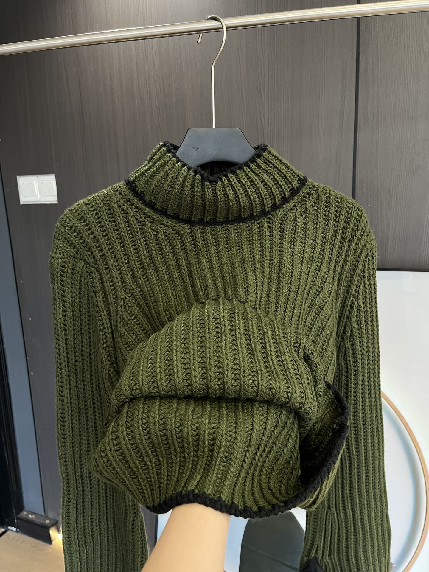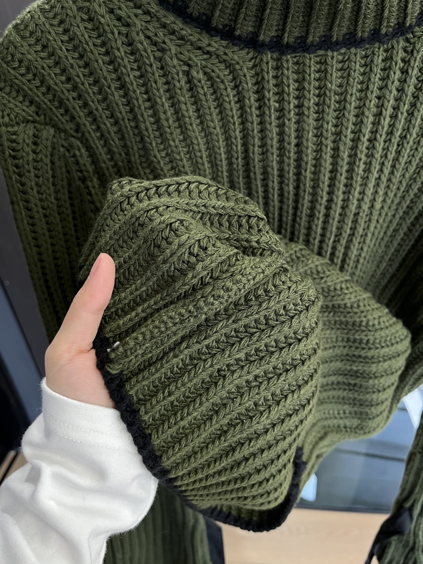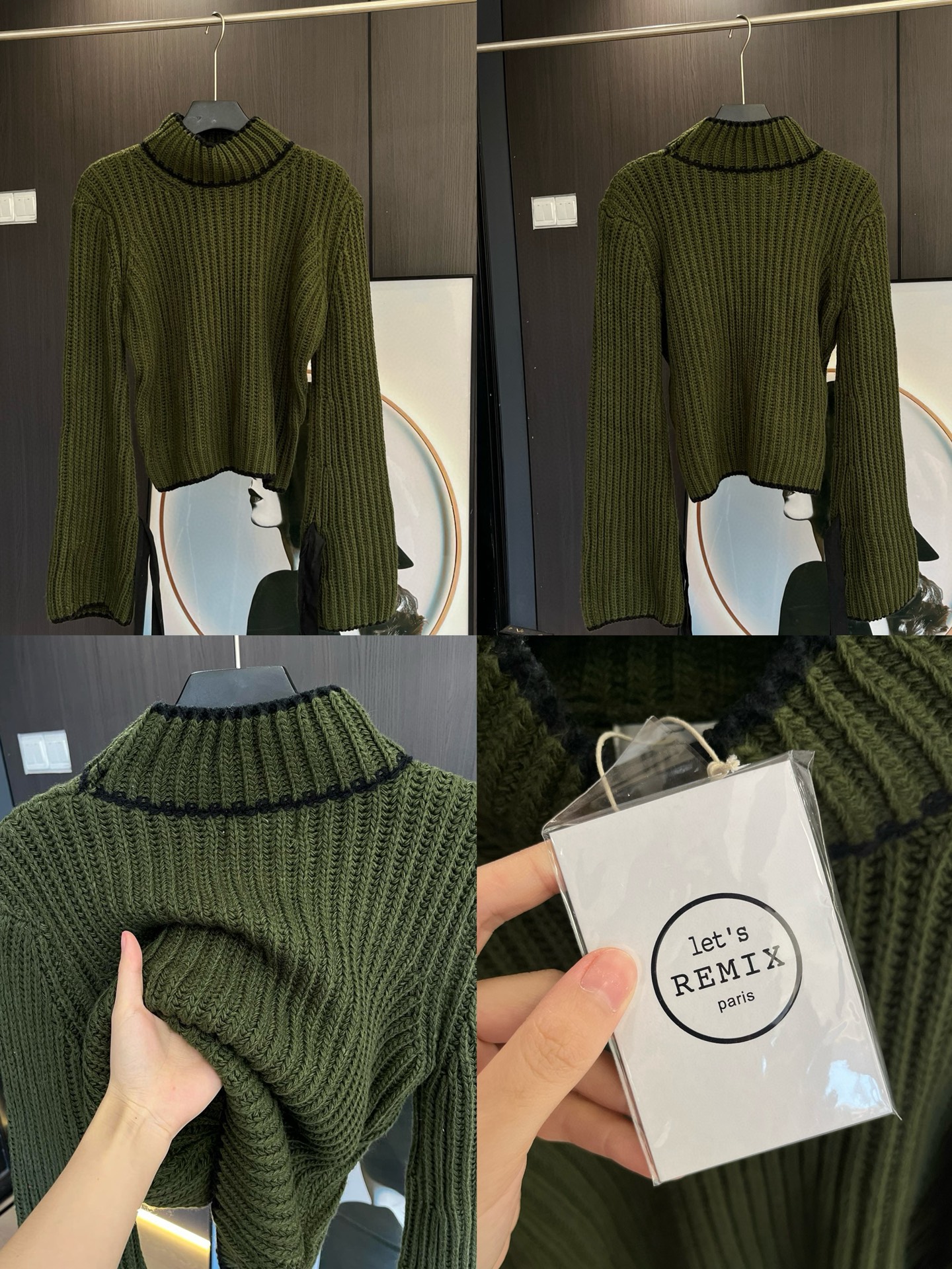 毛衣竖坑条设计纹理更显瘦,秋冬必备单品,上身垂感赞。袖口编织绳可自己调节