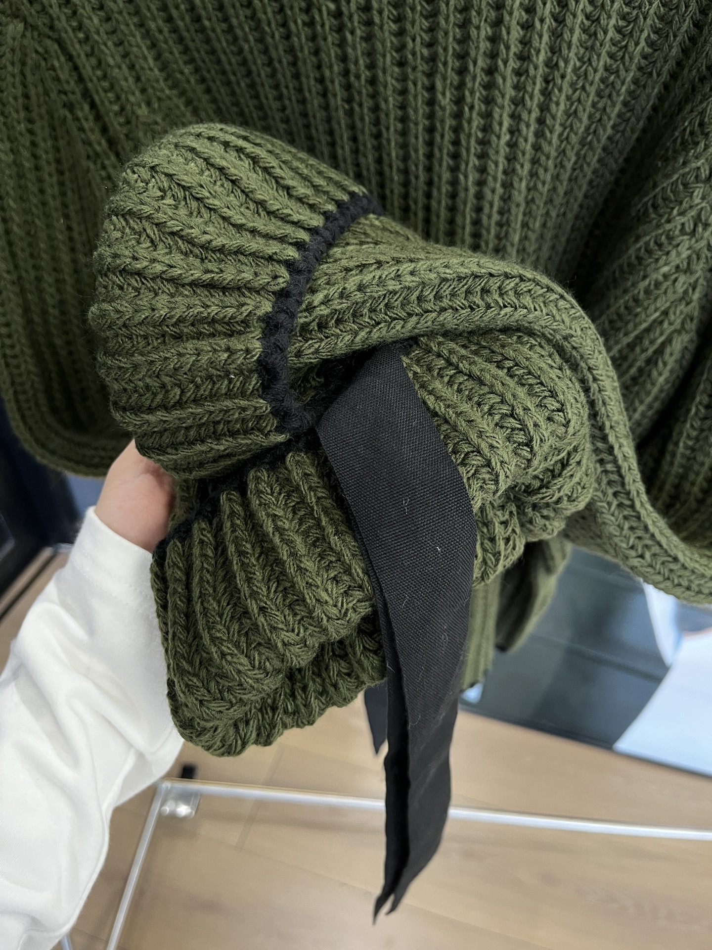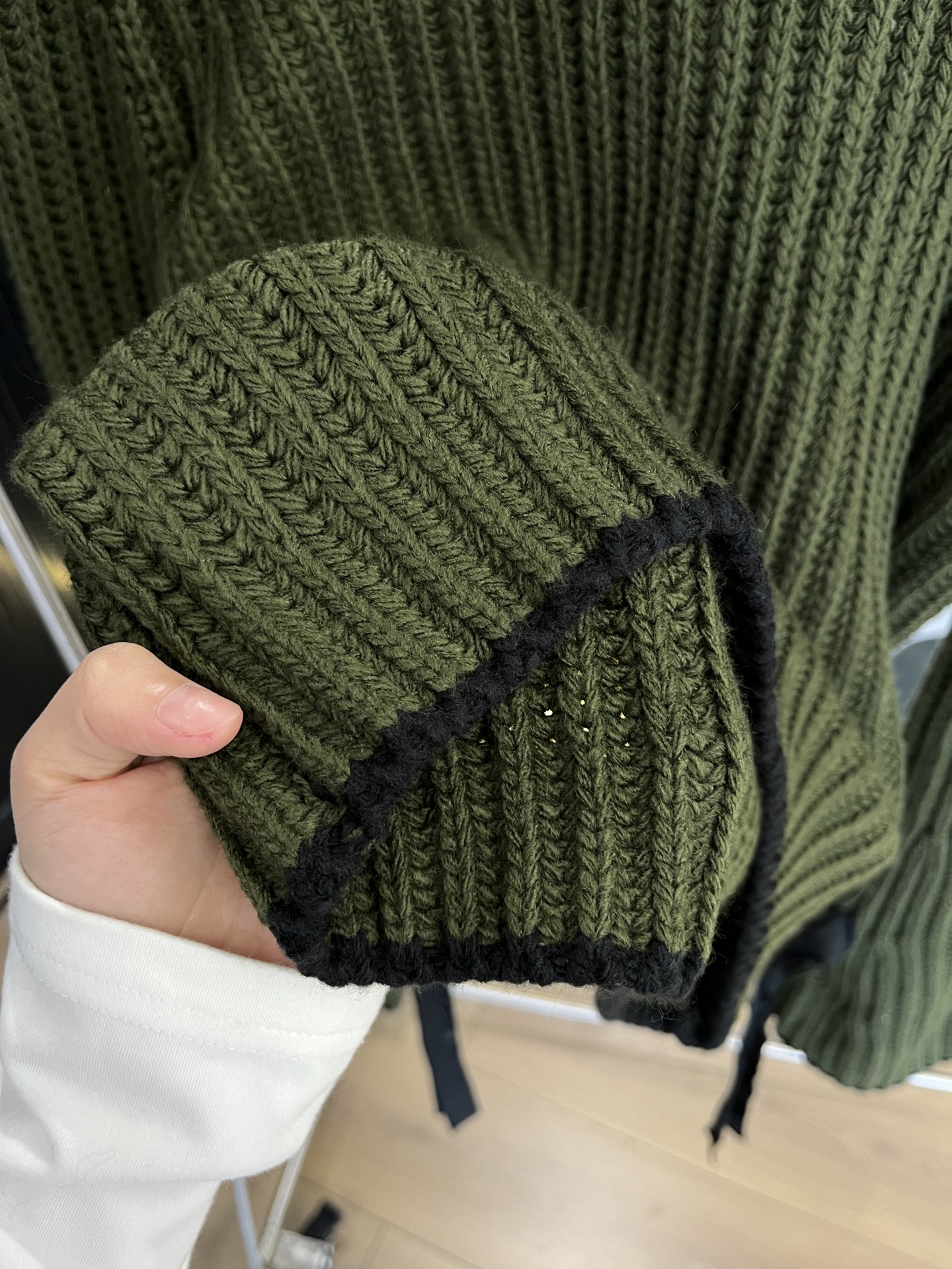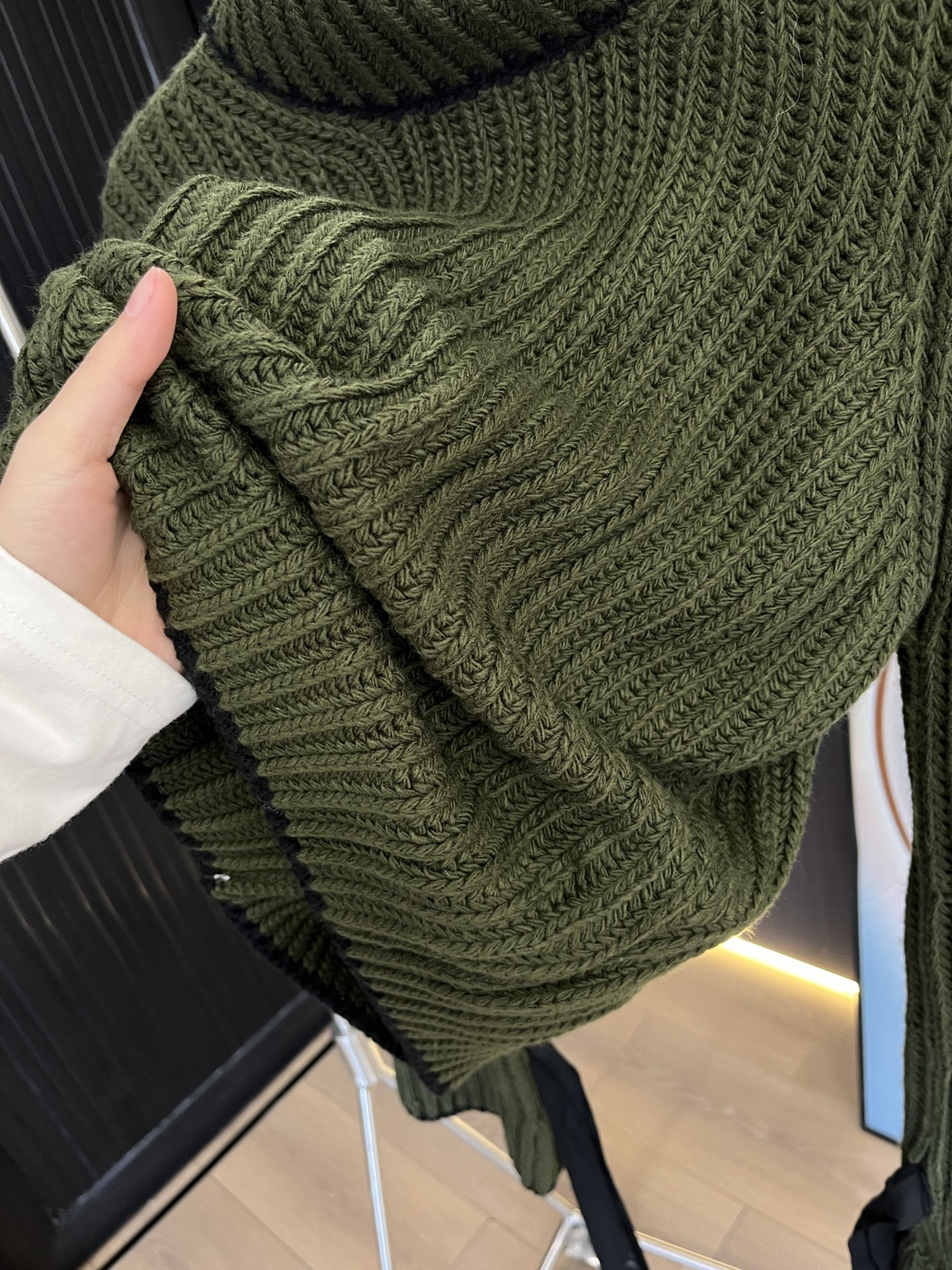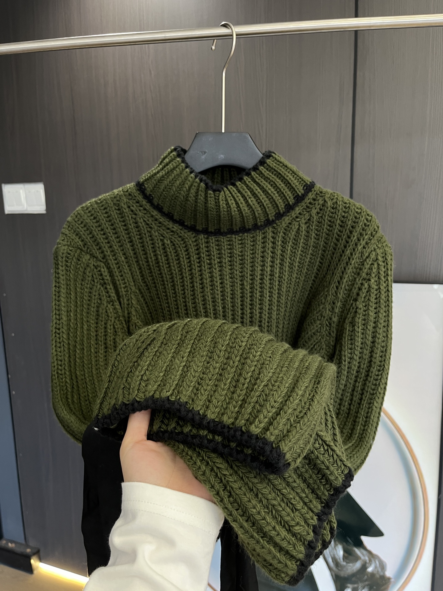 毛衣竖坑条设计纹理更显瘦,秋冬必备单品,上身垂感赞。袖口编织绳可自己调节