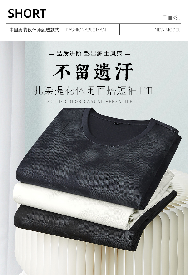 【棉质】【DDP】大依优型大码扎染提花短袖T恤休闲透气半袖夏季上衣胖子加肥加大