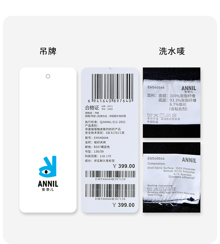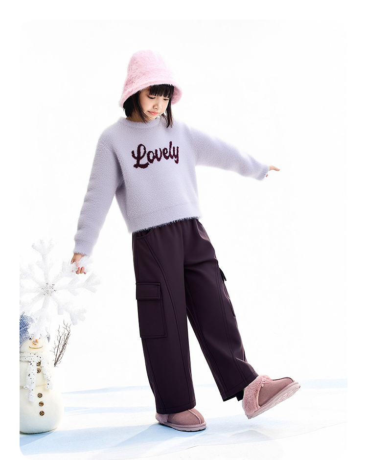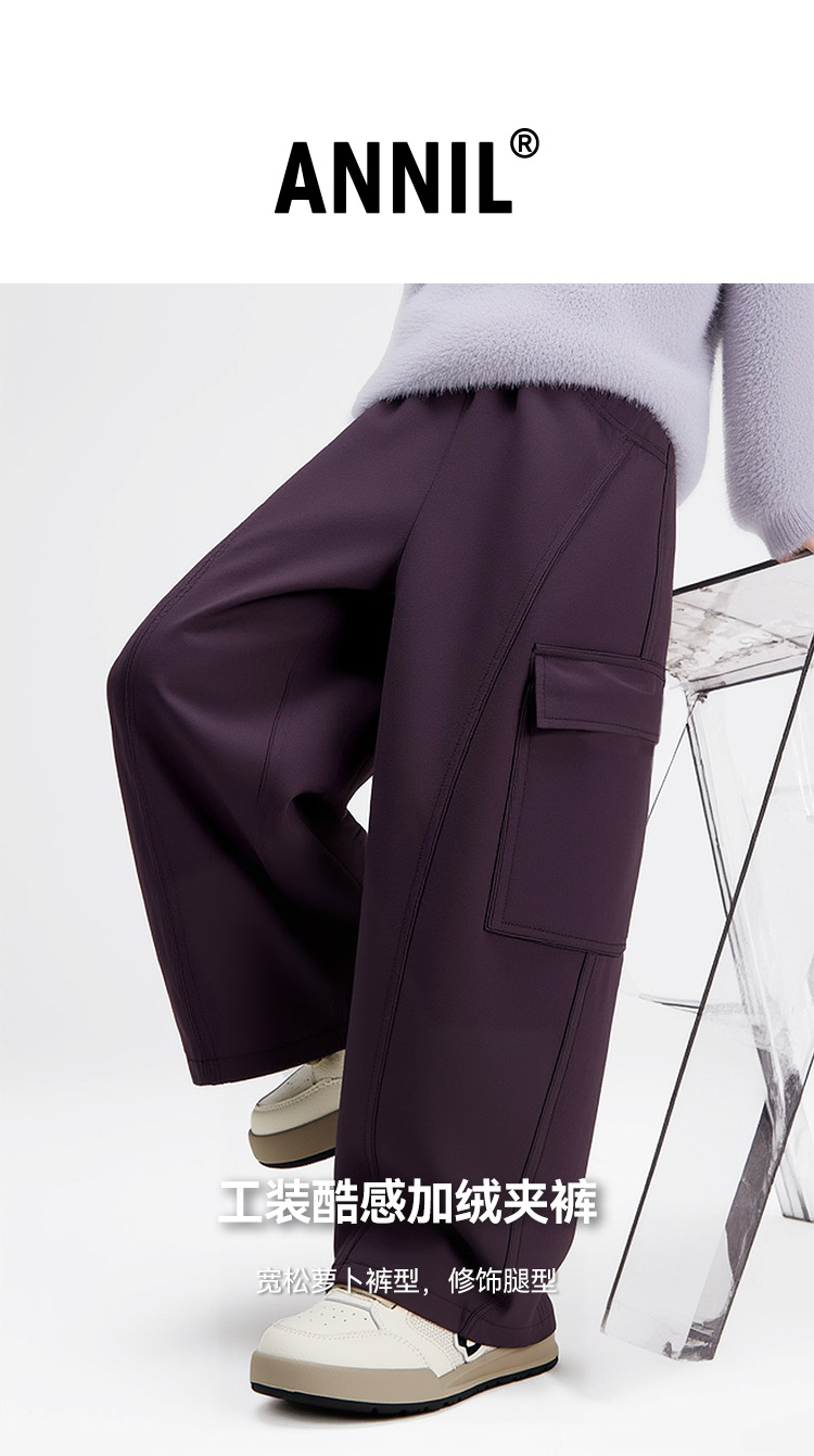 【加绒/时尚阔腿裤】男女童梭织夹裤冬季新款安奈儿童装EM546644