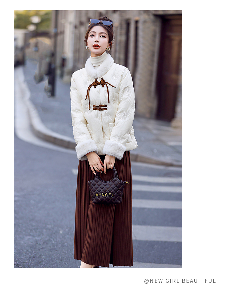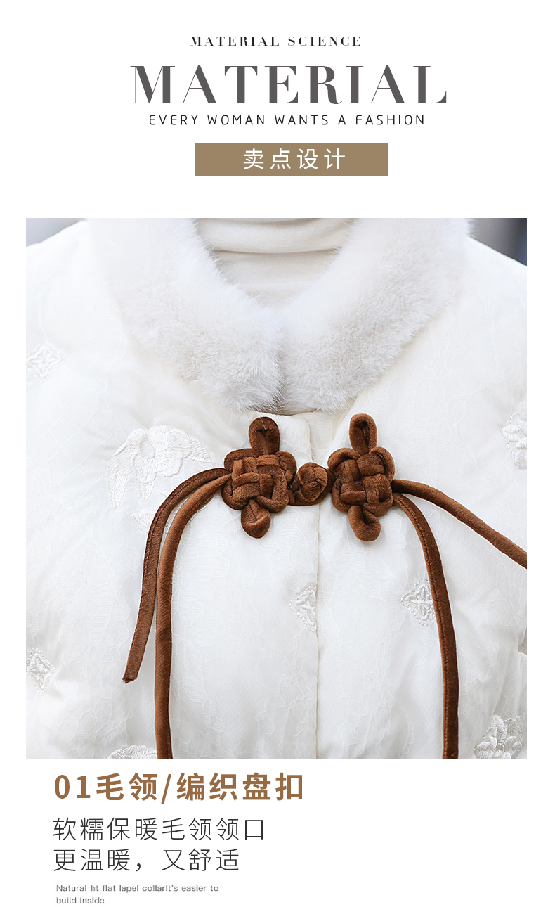 冬季新款,白鸭绒时尚潮流中式复古绣花毛领羽绒服HR-DMGY512