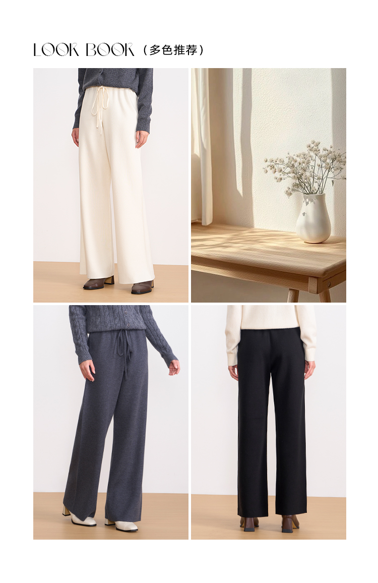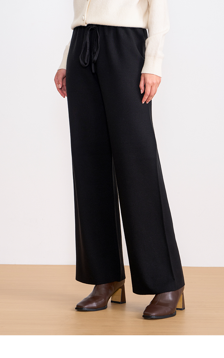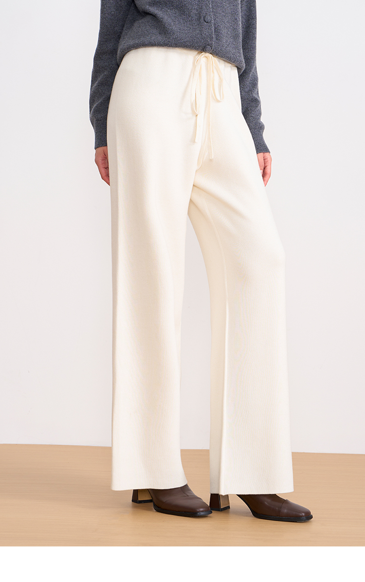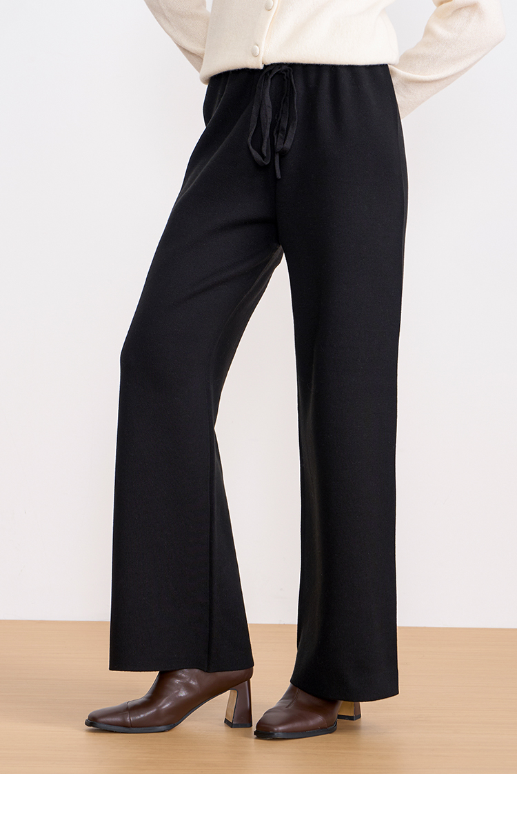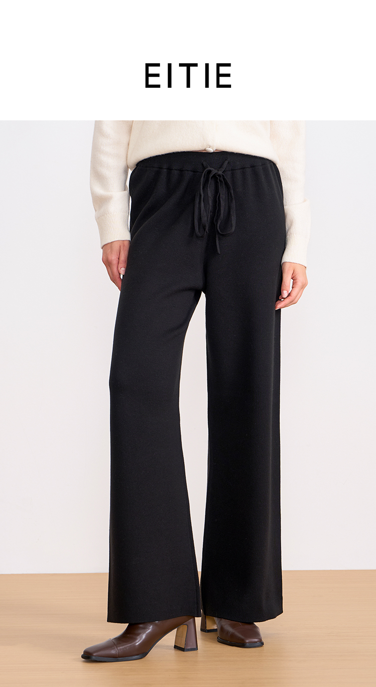 纬漫纪同款不上架-EITIE爱特爱舒适柔软松紧腰高腰直筒显瘦秋冬新款针织裤D2501925