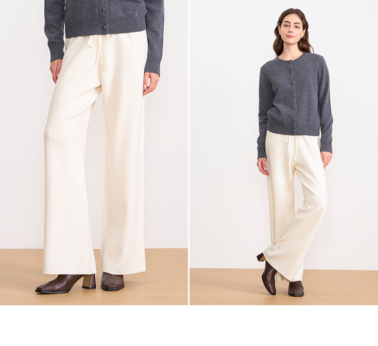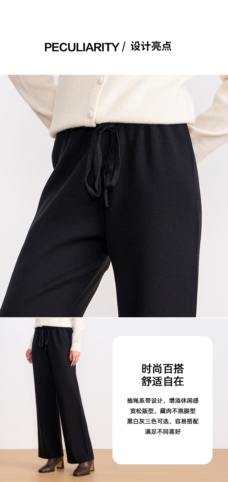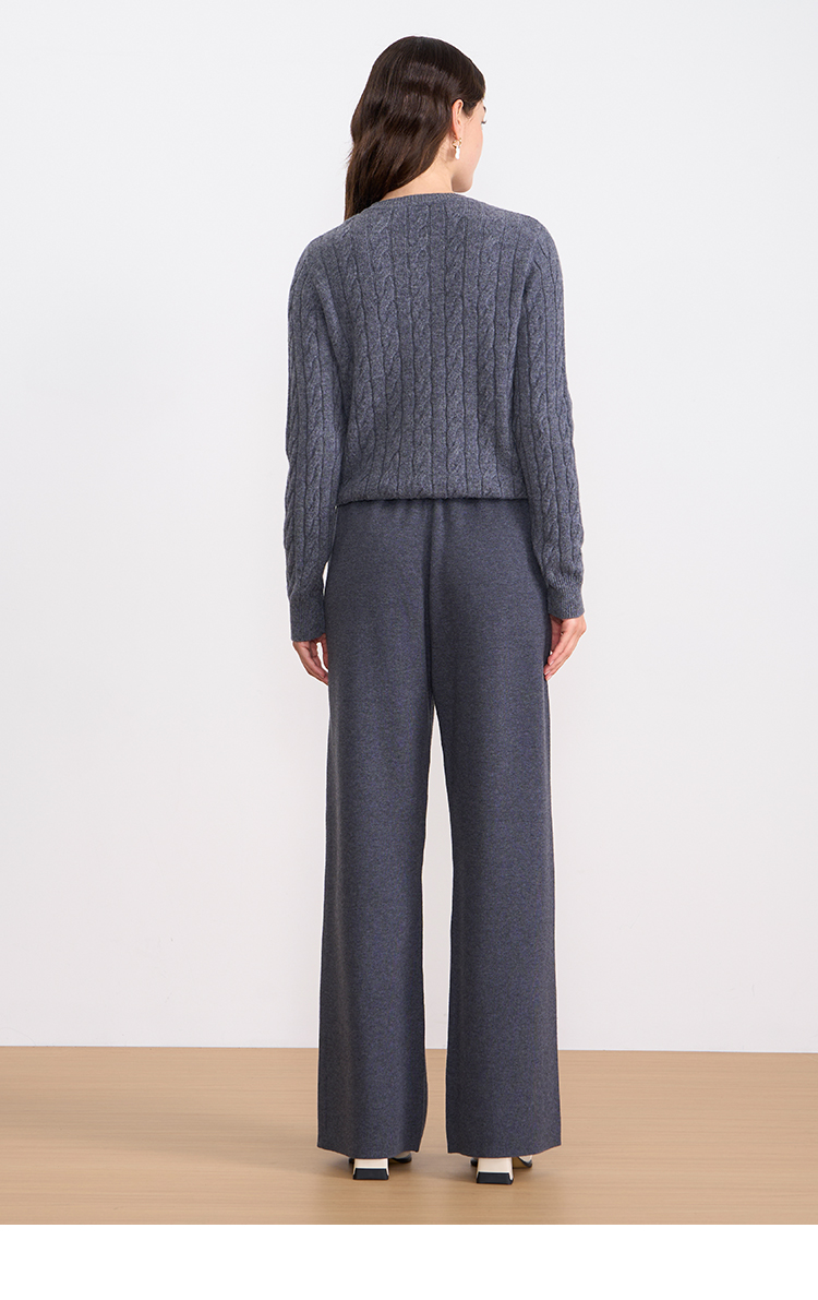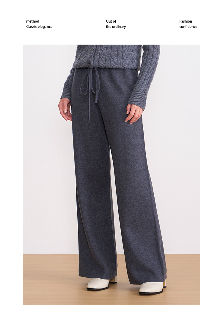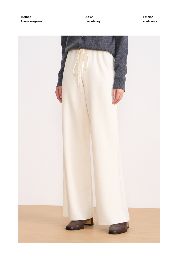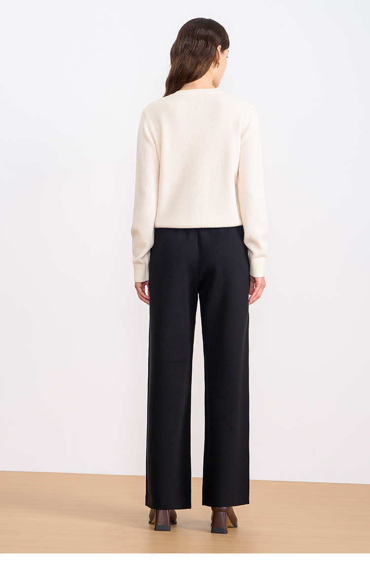 纬漫纪同款不上架-EITIE爱特爱舒适柔软松紧腰高腰直筒显瘦秋冬新款针织裤D2501925