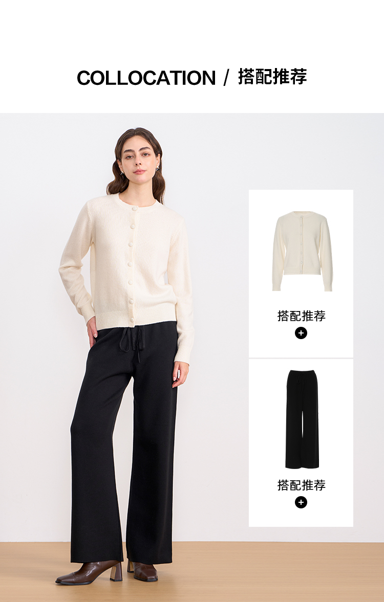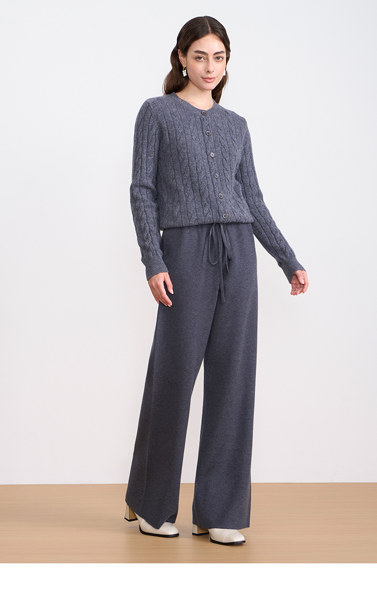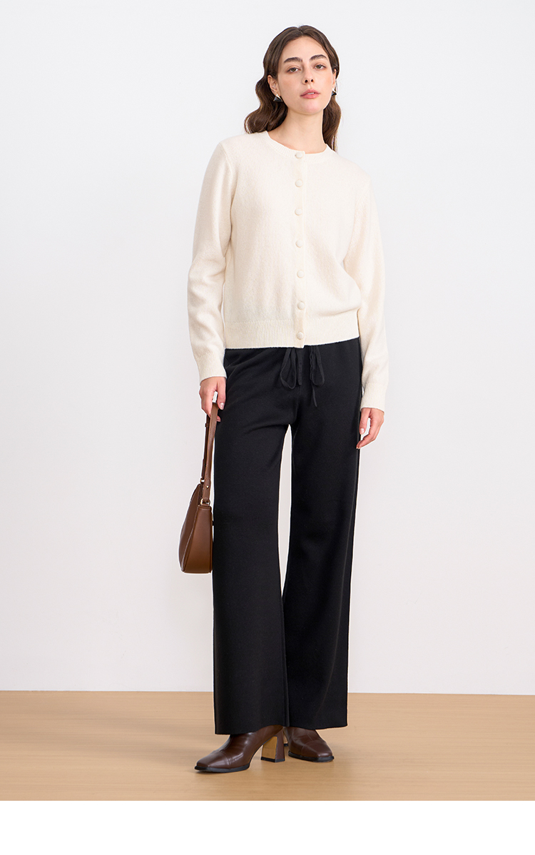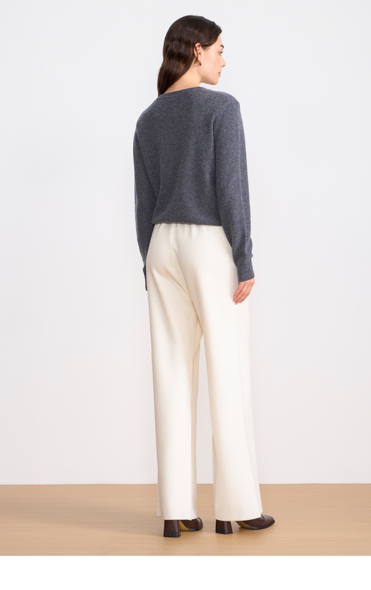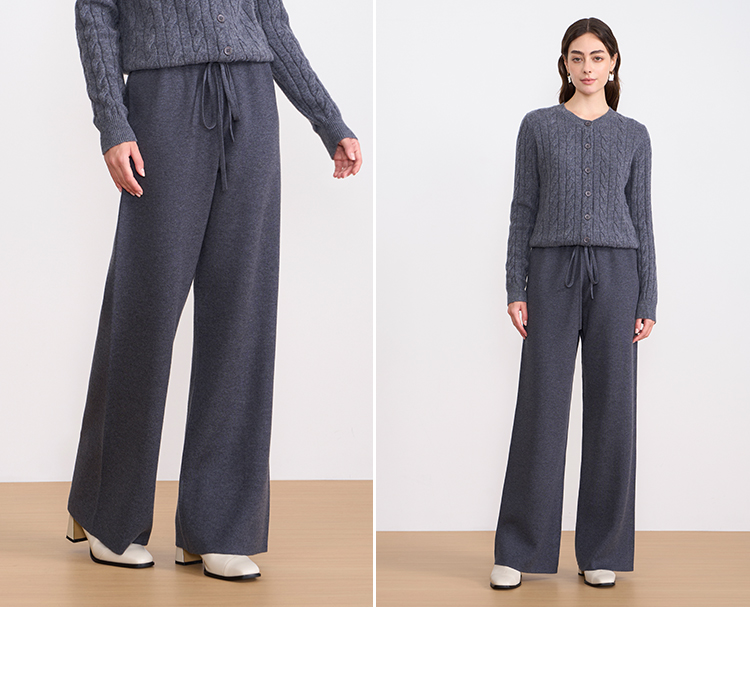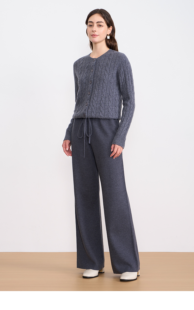 纬漫纪同款不上架-EITIE爱特爱舒适柔软松紧腰高腰直筒显瘦秋冬新款针织裤D2501925