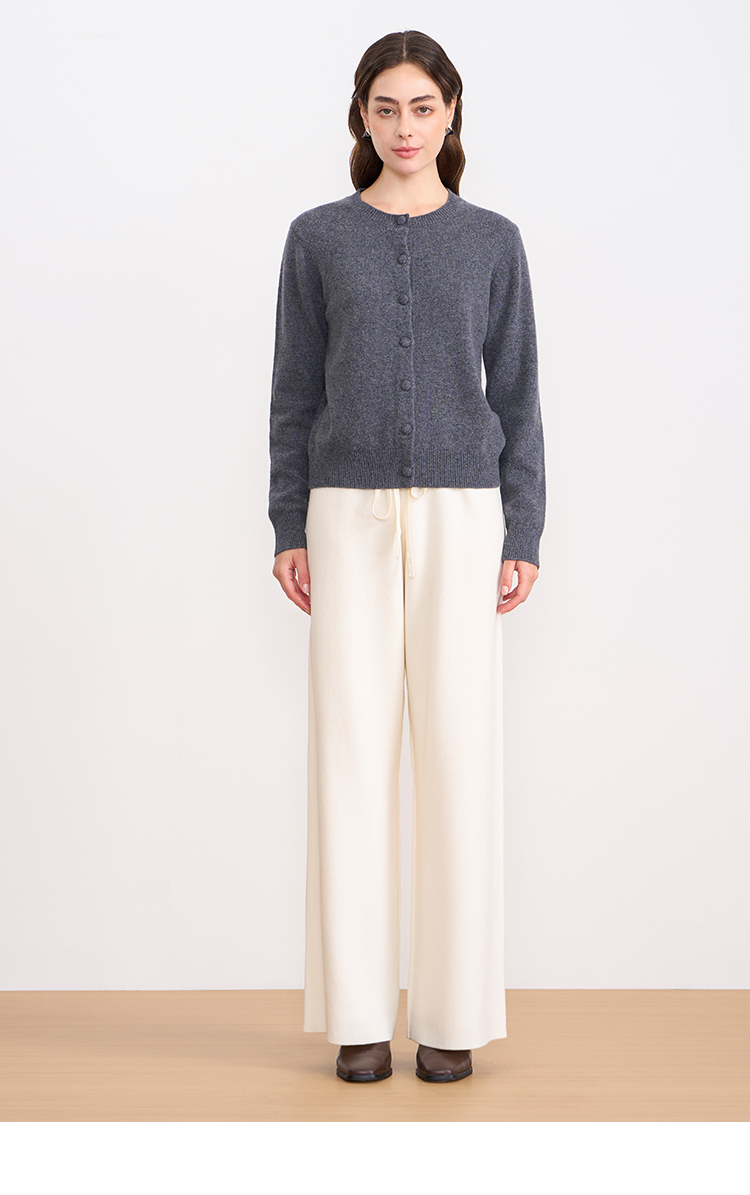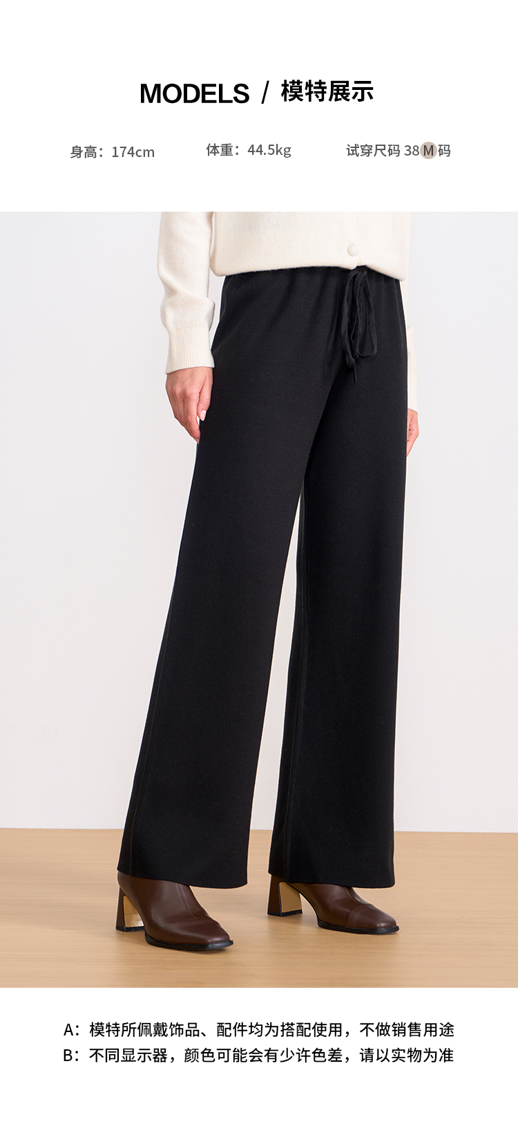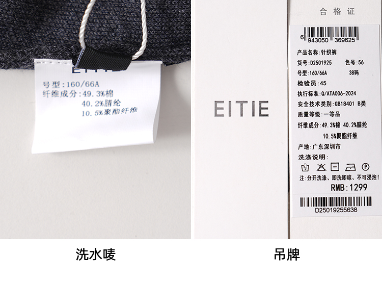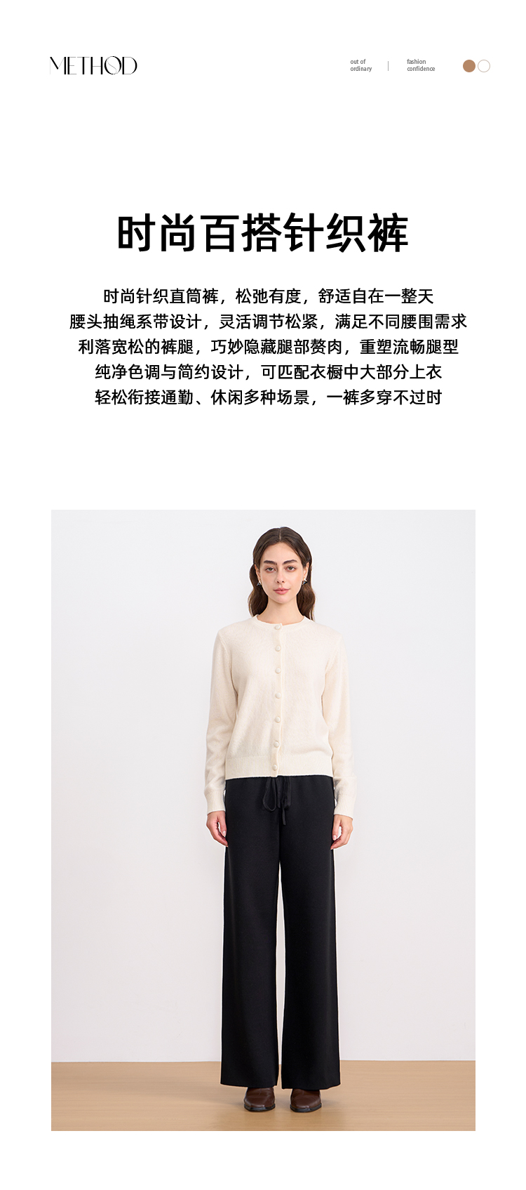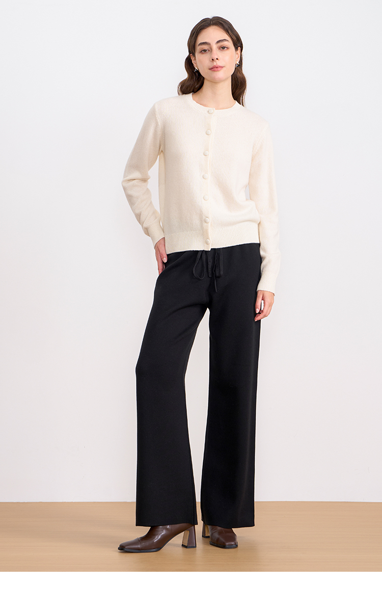 纬漫纪同款不上架-EITIE爱特爱舒适柔软松紧腰高腰直筒显瘦秋冬新款针织裤D2501925