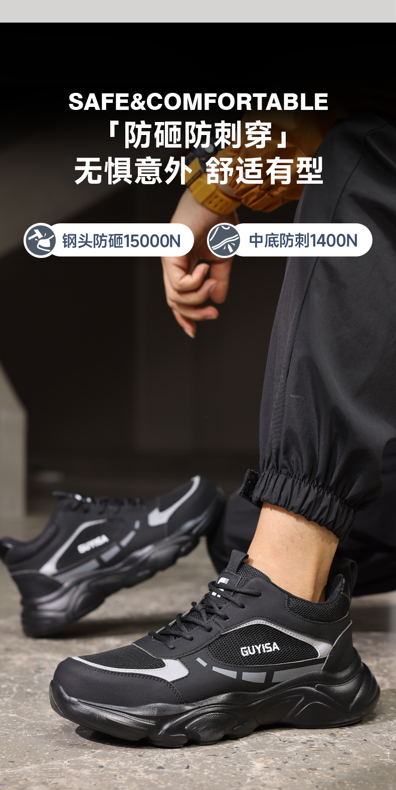 劳保鞋休闲系列防砸防刺穿欧标钢包头凯夫拉橡塑大底舒适耐磨