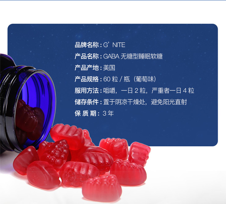 【美国殿堂级助睡神器,8小时安眠到天亮】G‘NITE晚安GABA无糖型睡眠软糖重返婴儿般睡眠舒缓情绪缓解焦虑非褪黑素