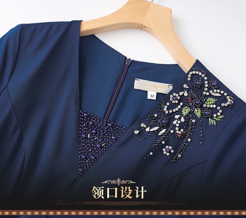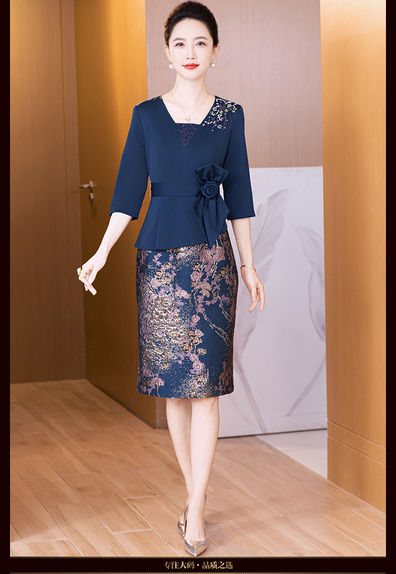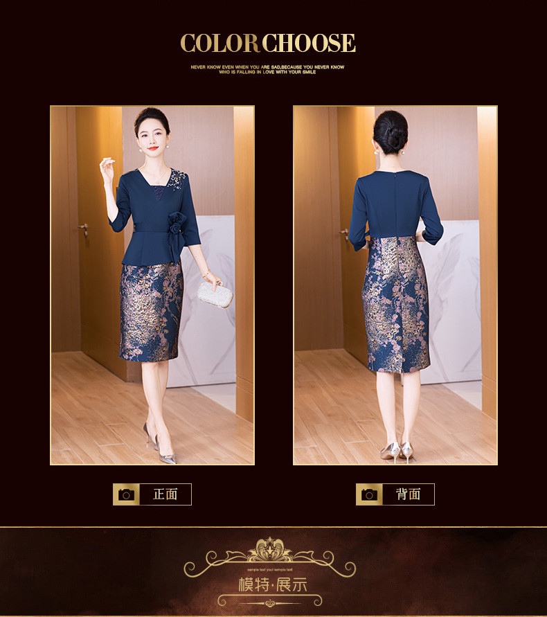 LC2540 2025秋季新款拼接碎花优雅时尚宴会连衣裙修身显瘦中长款妈妈装