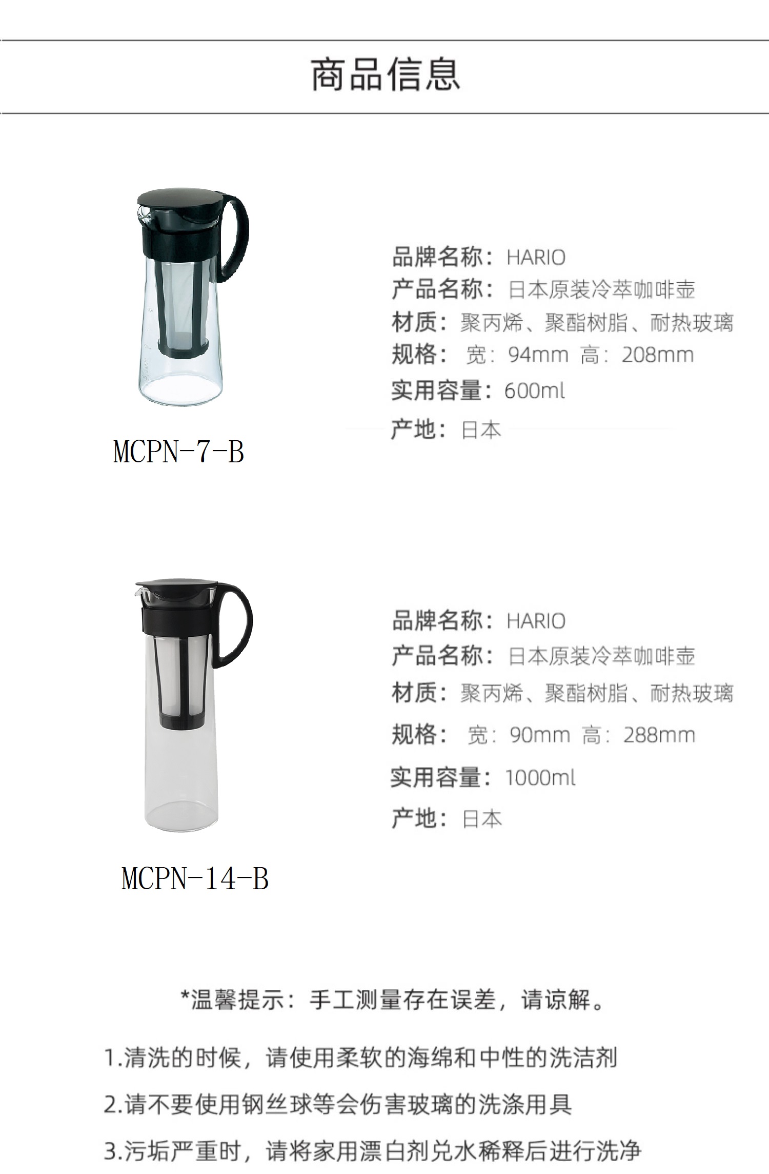 【HARIO】冷泡咖啡壶冷翠茶壶带过滤网玻璃冰咖啡壶MCPN