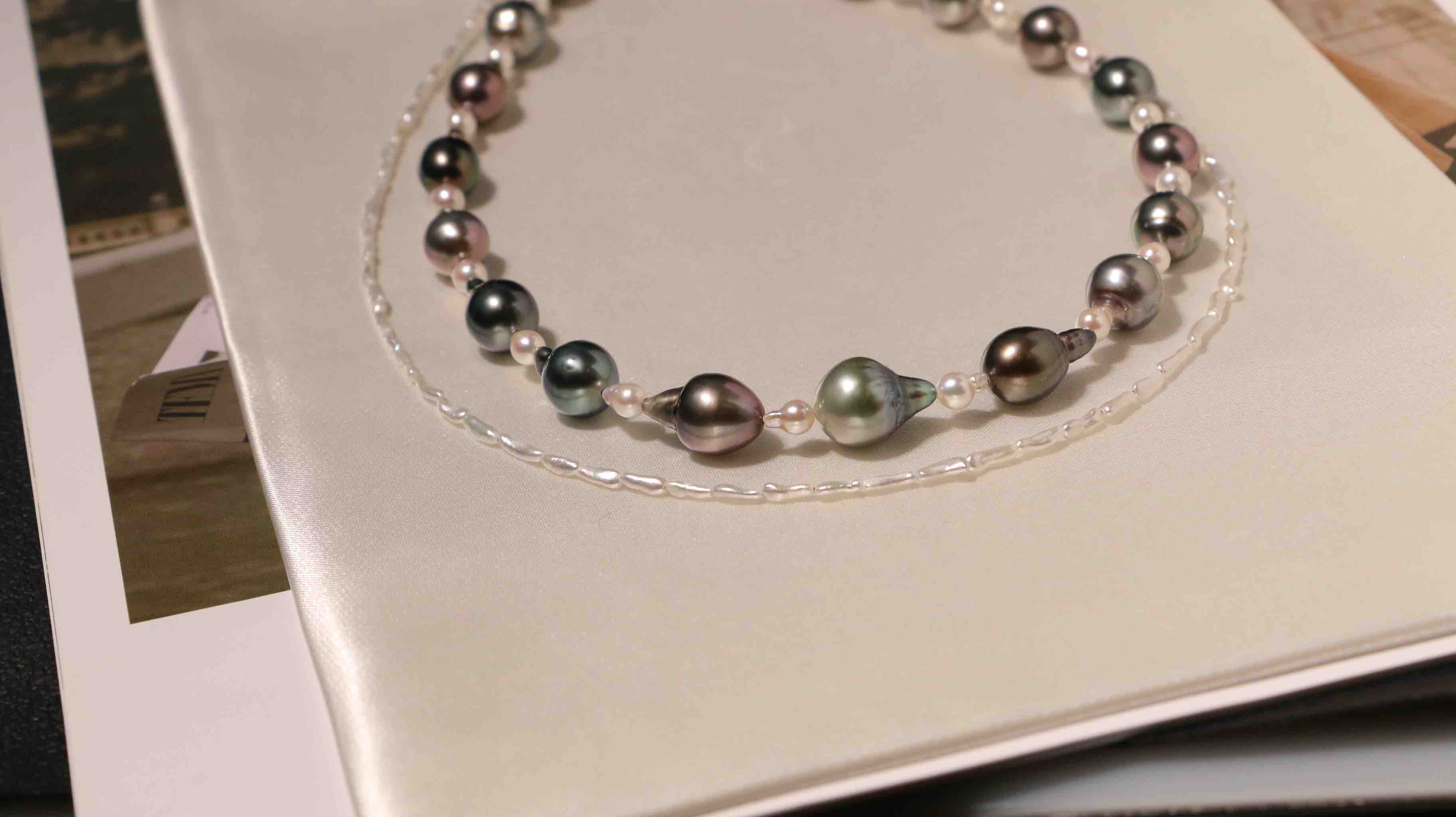 澳白罕见白金色系keshi,不管是叠搭还是单独佩戴都很好看,珠子粗细基本集中在1.5-2mm,长条状珍珠为主,要知道这个打孔超级考验功力[呲牙]。
