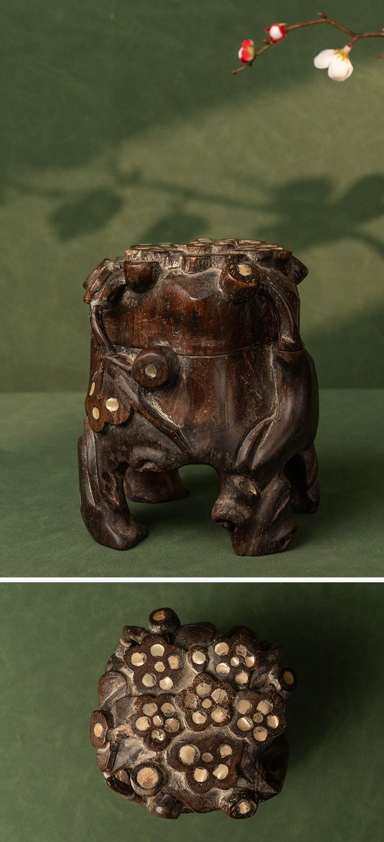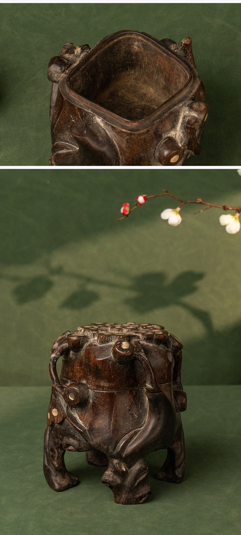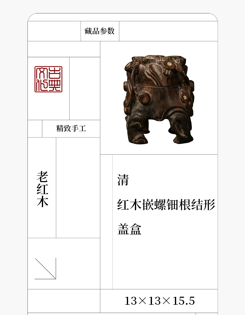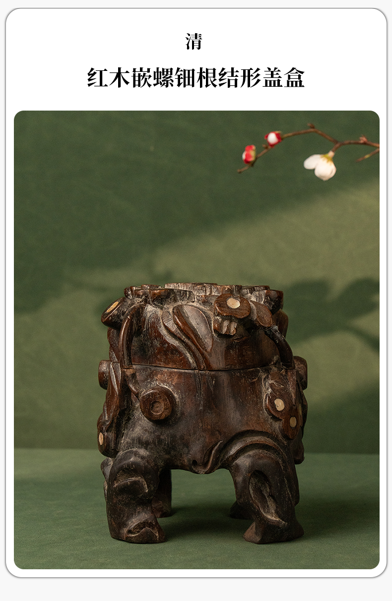清 红木嵌螺钿根结形盖盒