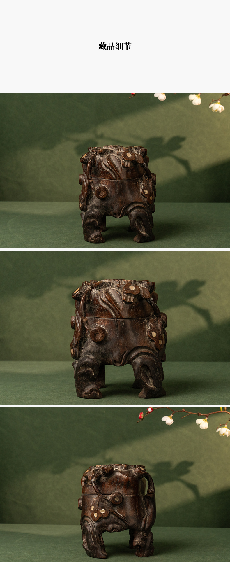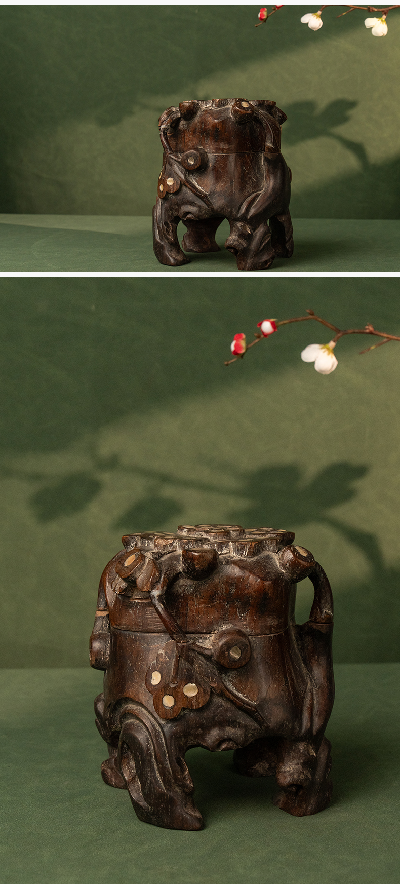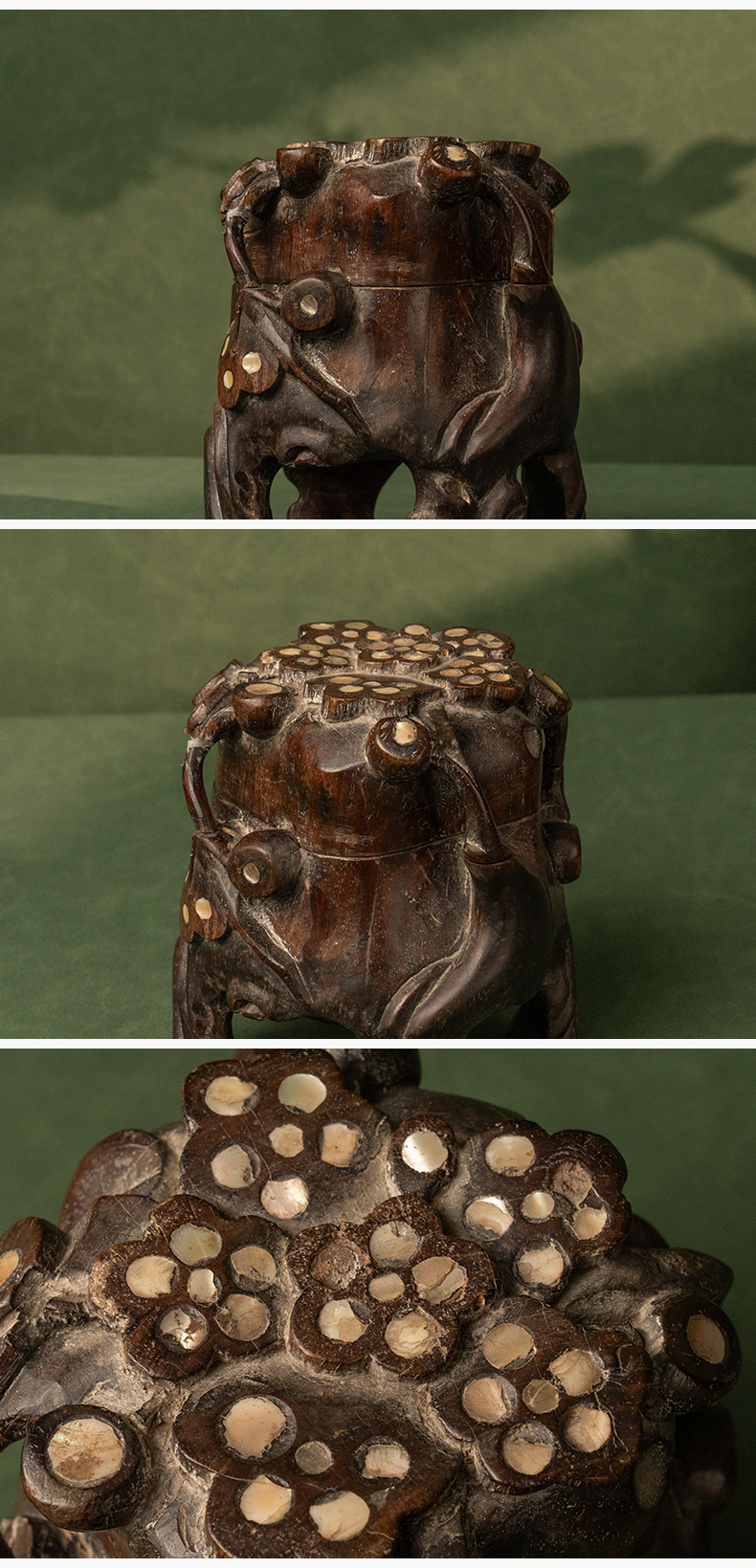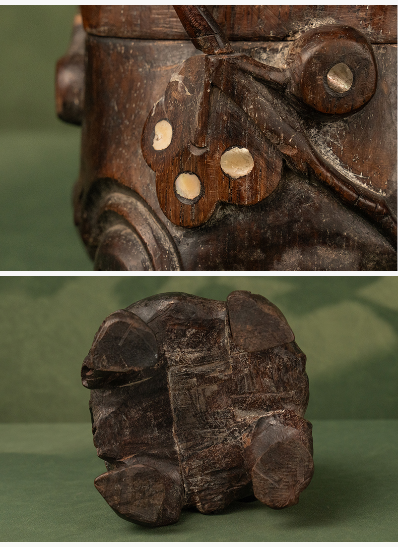 清 红木嵌螺钿根结形盖盒