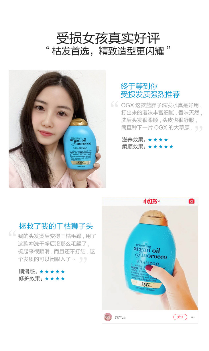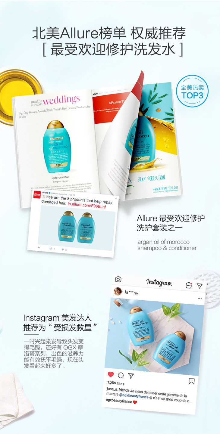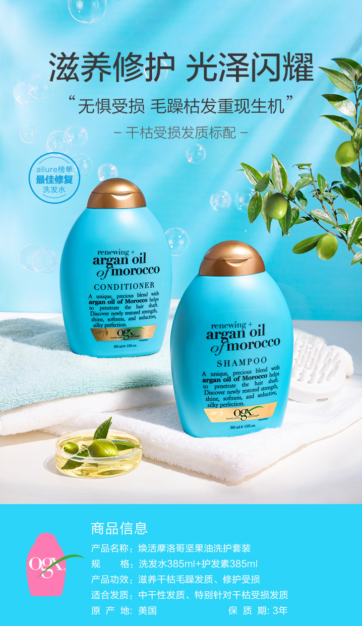 【海外直邮】OGX 摩洛哥樱花牛奶滋养修护洗发水护发素 385ml