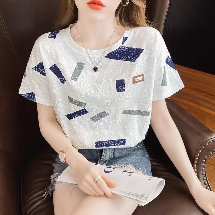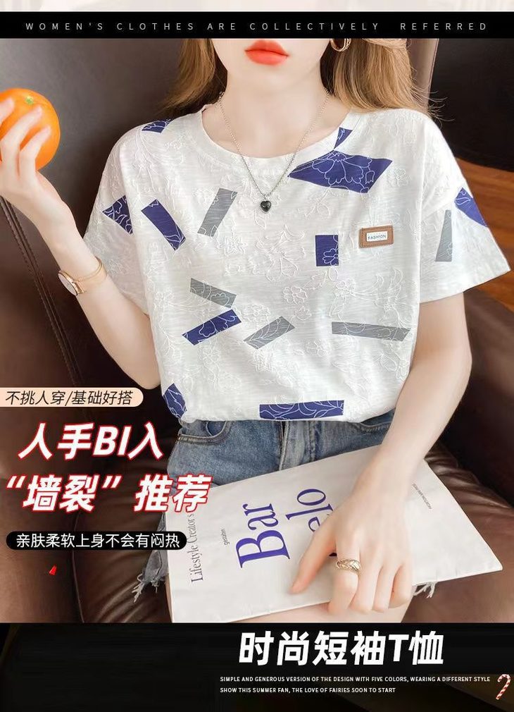 MZ802995韩国棉短袖T恤女ins潮白色半袖夏装2022年新款韩版宽松女士上衣